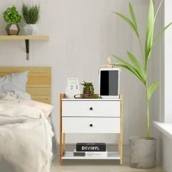 relaxdays Nachtschrank »Schränkchen mit Schubladen« A Hellbraun Weiß Schwarz, Hellbraun Weiß Grau