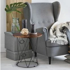 relaxdays Beistelltisch »Beistelltisch rund mit Ablage«, Schwarz Schwarz Hellbraun, Weiß Hellbraun
