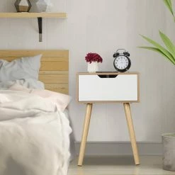 relaxdays Nachttisch »Dunkelgrauer Nachttisch mit Holzbeinen«