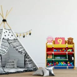relaxdays Standregal »Kinderregal mit 9 Boxen und Motiv«, B Weiß Hellblau Grau, Weiß Hellblau Grün