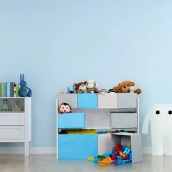 relaxdays Standregal »Kinderregal mit Motiv und 9 Boxen«, A Weiß Gelb Hellblau, Weiß Grau Hellblau