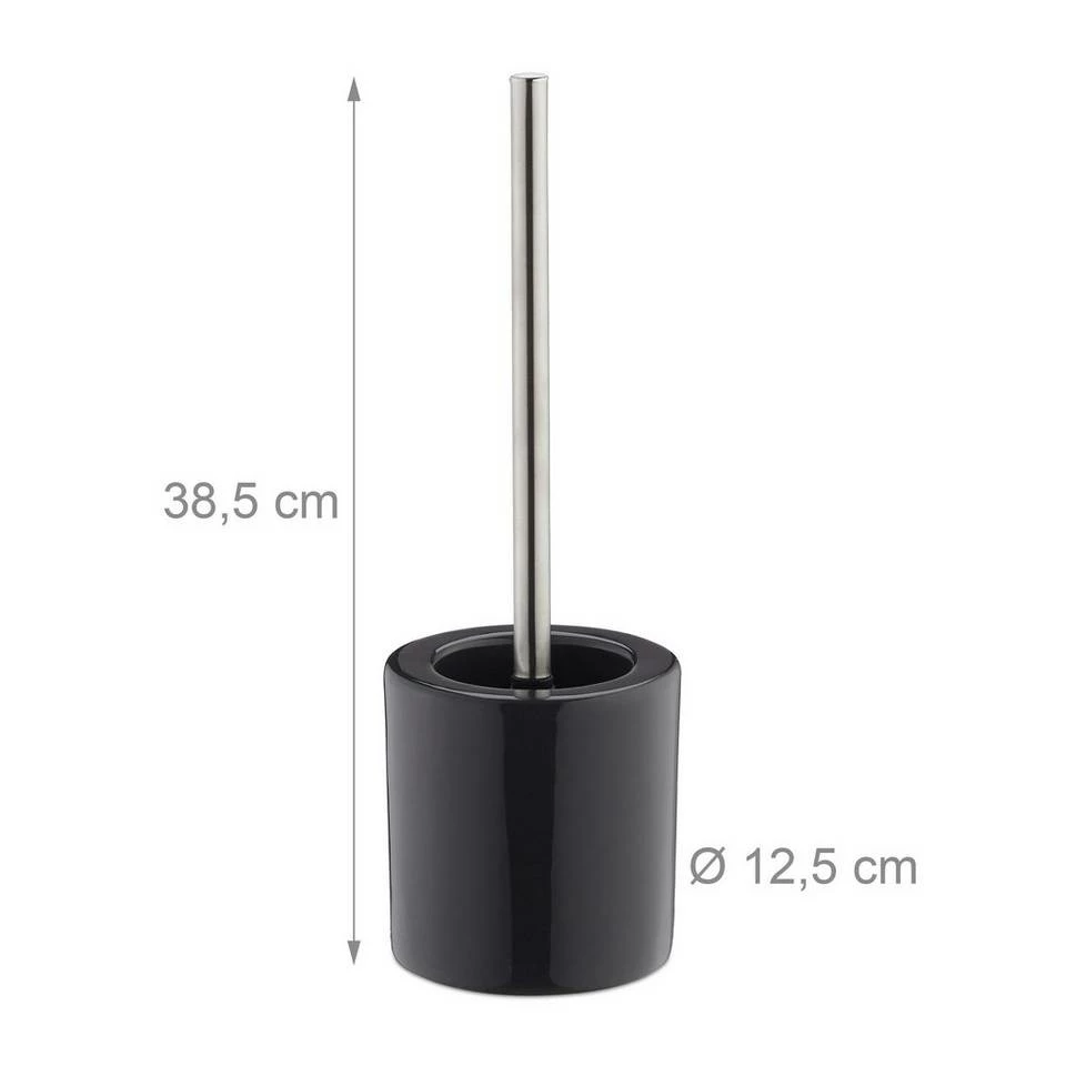 - Stil: Der glänzende Keramikbehälter bildet einen Kontrast zum matten Metall-Griff der Klobürste