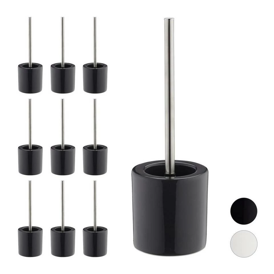 - Zeitloses Set: 10 x Toiletten Garnitur bestehend aus Keramik-Behälter mit Metallgriff-Bürste
