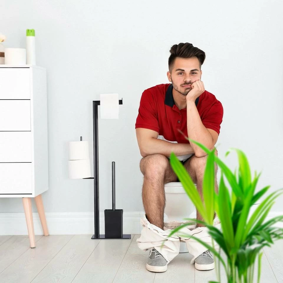 Toilettenbutler in schickem Matt-Schwarz Im Badezimmer oder Gäste-WC – mit dieser WC Garnitur haben Sie stets Klopapier, Klobürste und bis zu 2 Ersatzrollen griffbereit. Der Toilettenbutler in schickem Matt-Schwarz lässt sich freistehend beliebig platzieren und verhindert dank Kunststoffschoner Kratzer im Boden. Das moderne Design wird dabei ein toller Hingucker in Ihrem Bad. Für die entsprechende Hygiene sorgen der entnehmbare Bürstenbehälter und der austauschbare Bürstenkopf. Achtung: Bitte achten Sie beim Kauf eines Ersatzbürstenkopfes auf einen Kopf-Durchmesser von etwa 8 cm und ein Innengewinde von ca. 9,5 mm, wie beim Relaxdays Bürstenkopf-Modell 10021025.