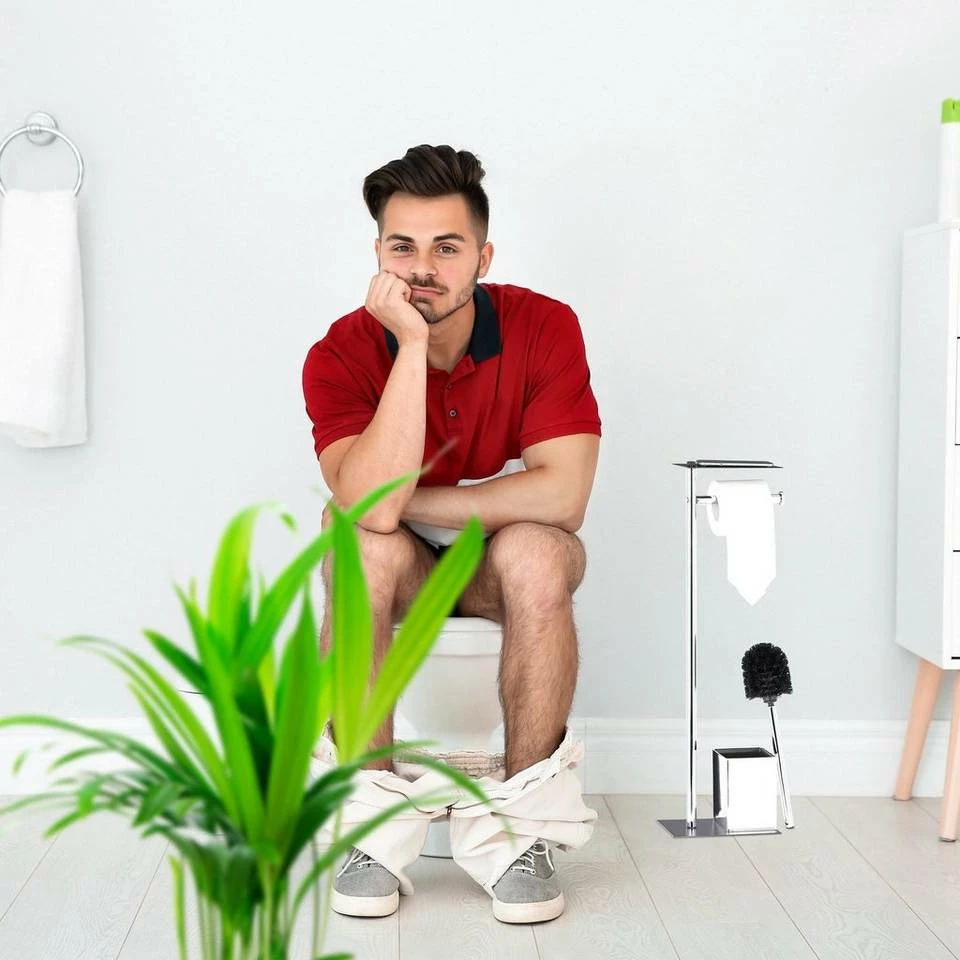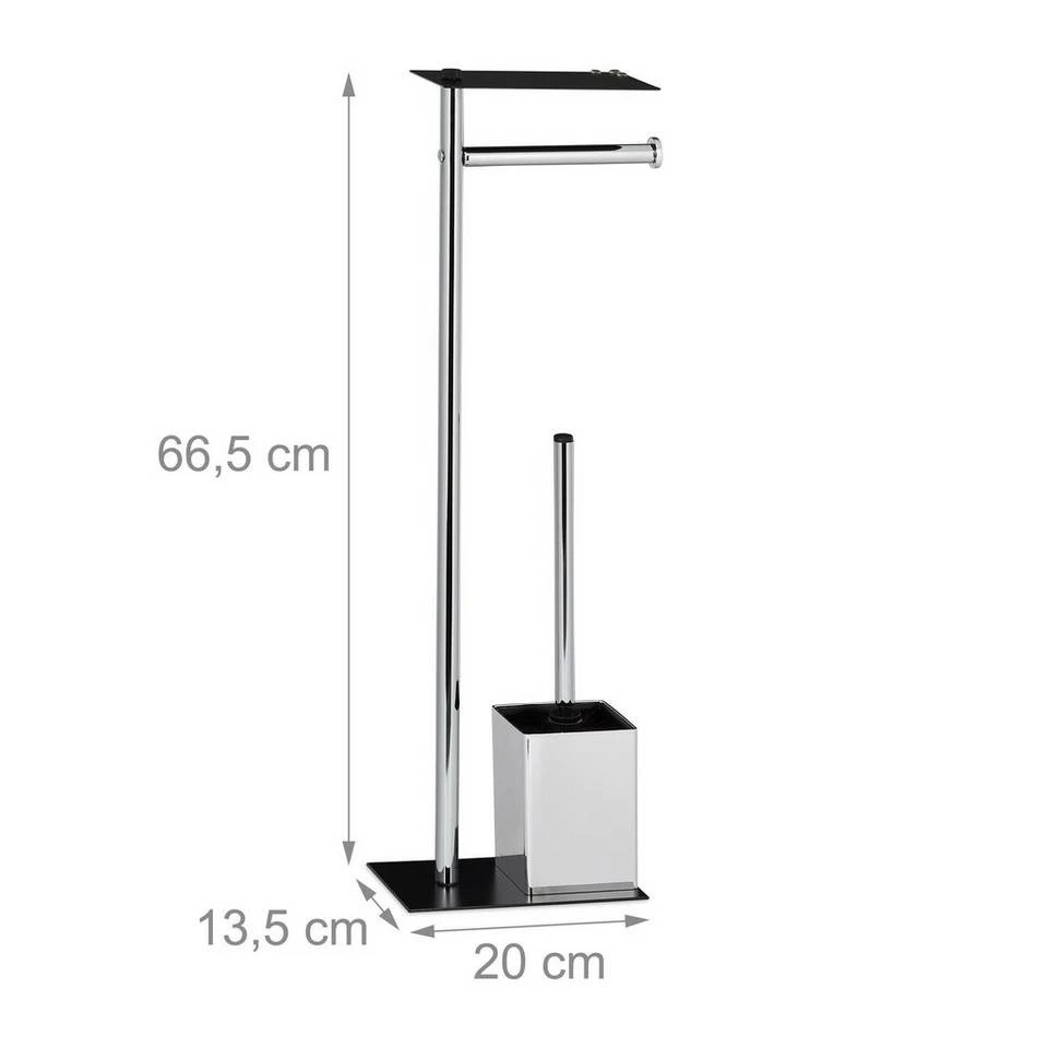 - WC Zubehör Set: Freistehende WC Garnitur bestehend aus einem Toilettenpapierhalter mit offenem Bürstenhalter inklusive Toilettenbürste – Maße H x B x T: ca. 66,5 x 20 x 13,5 cm