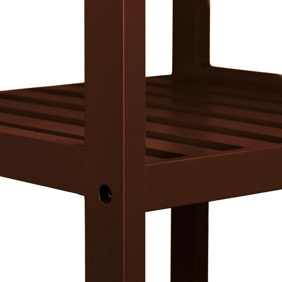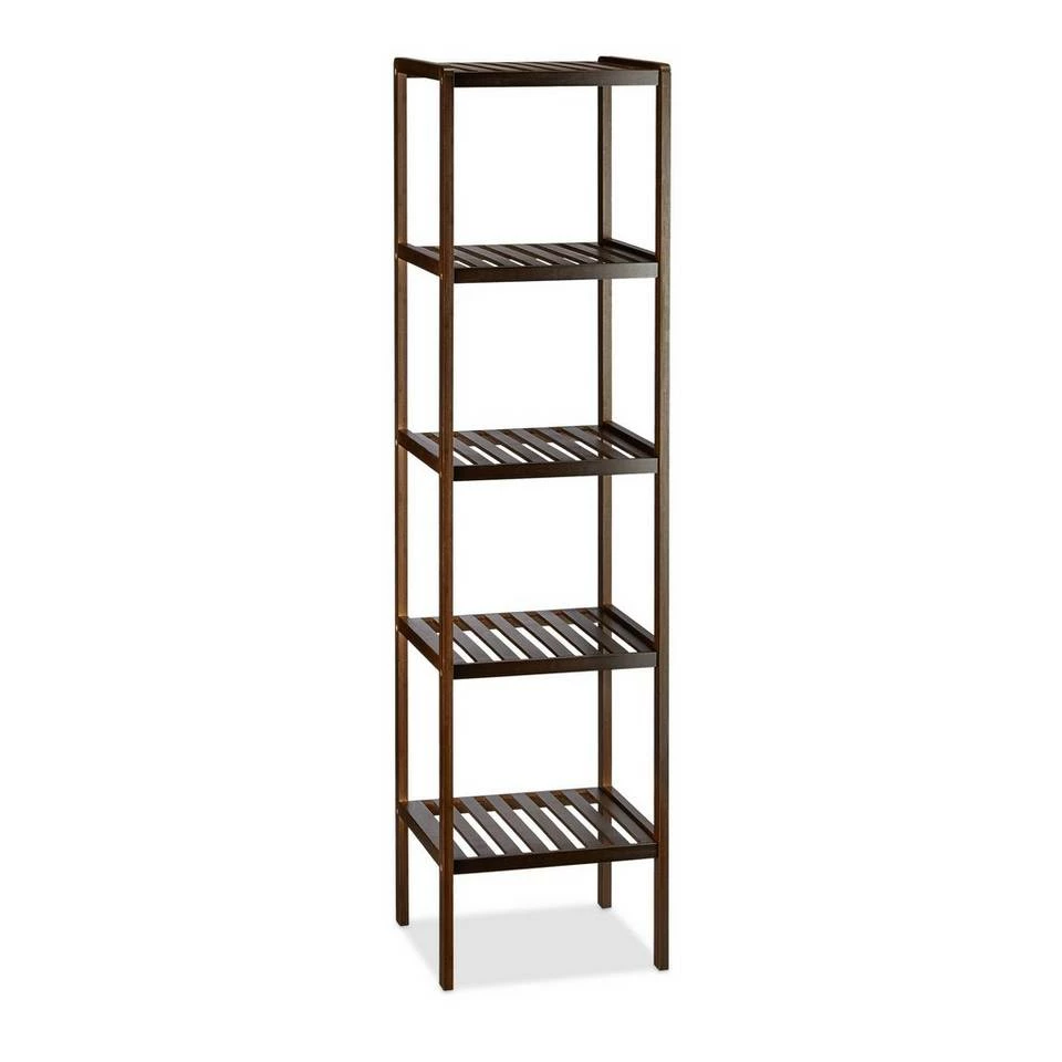 Bambus Badregal mit 5 Ablagen Sie stolpern im Keller ständig über Bücher, alte Spielsachen und andere Gegenstände, die dort viel zu viel Raum einnehmen? Oder Sie wissen nicht mehr, wie Sie Ihre Küchenutensilien oder Badartikel wie beispielsweise Handtücher unterbringen sollen? Dieses dekorative Standregal aus Bambus hilft Ihnen weiter. Das Badregal benötigt nur eine geringe Stellfläche und schafft mit seinen 5 quadratischen Ablageflächen neuen Stauraum. Nicht nur von der praktischen Warte aus betrachtet ist das Bücherregal zu empfehlen, denn auch optisch überzeugt das Holzregal durch seine angenehme dunkelbraune Farbgebung.