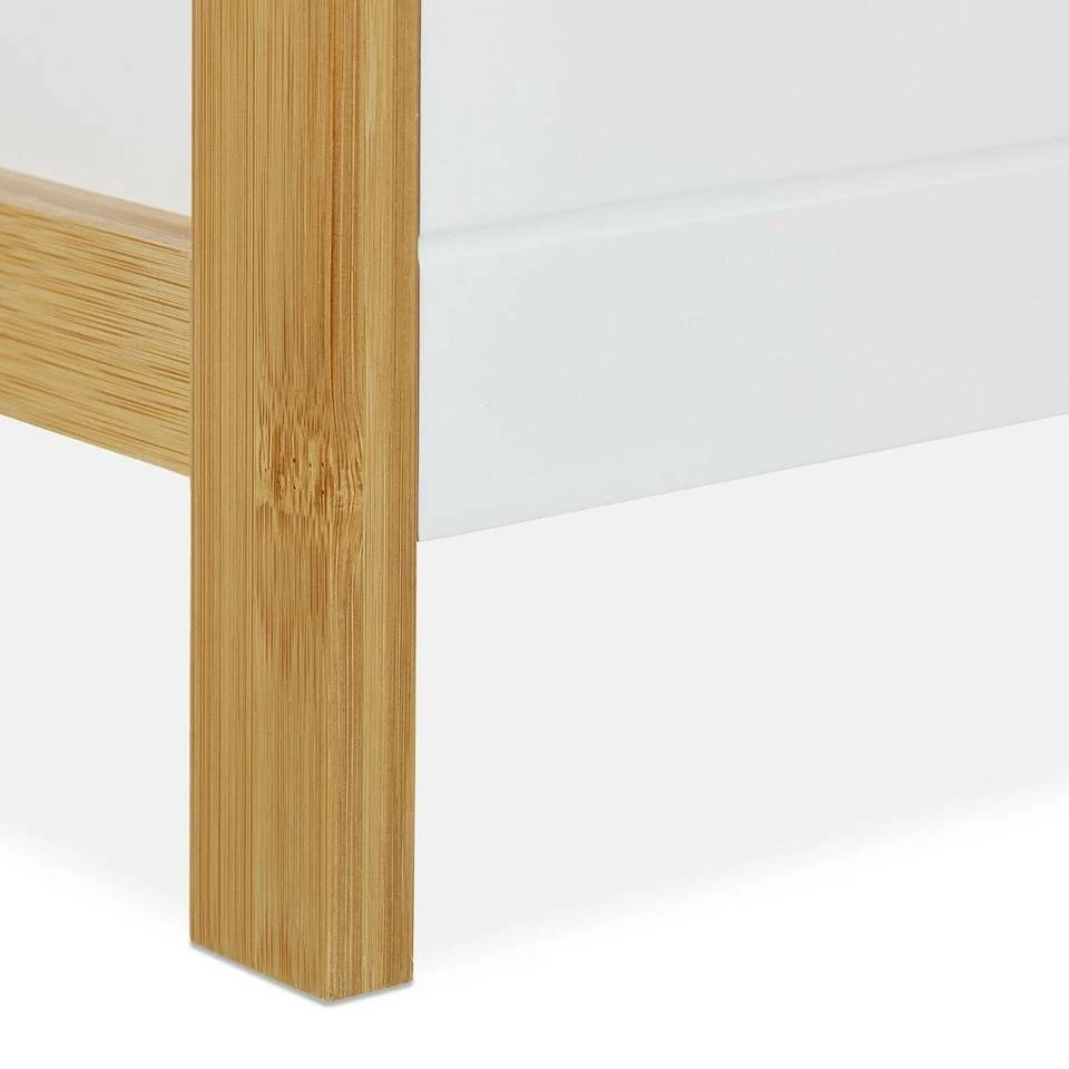 - Modern: Ansprechende Kombination des Badregals aus natürlichem Bambus und weißen Ablagen aus MDF