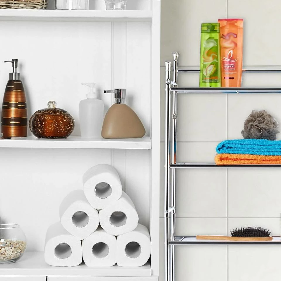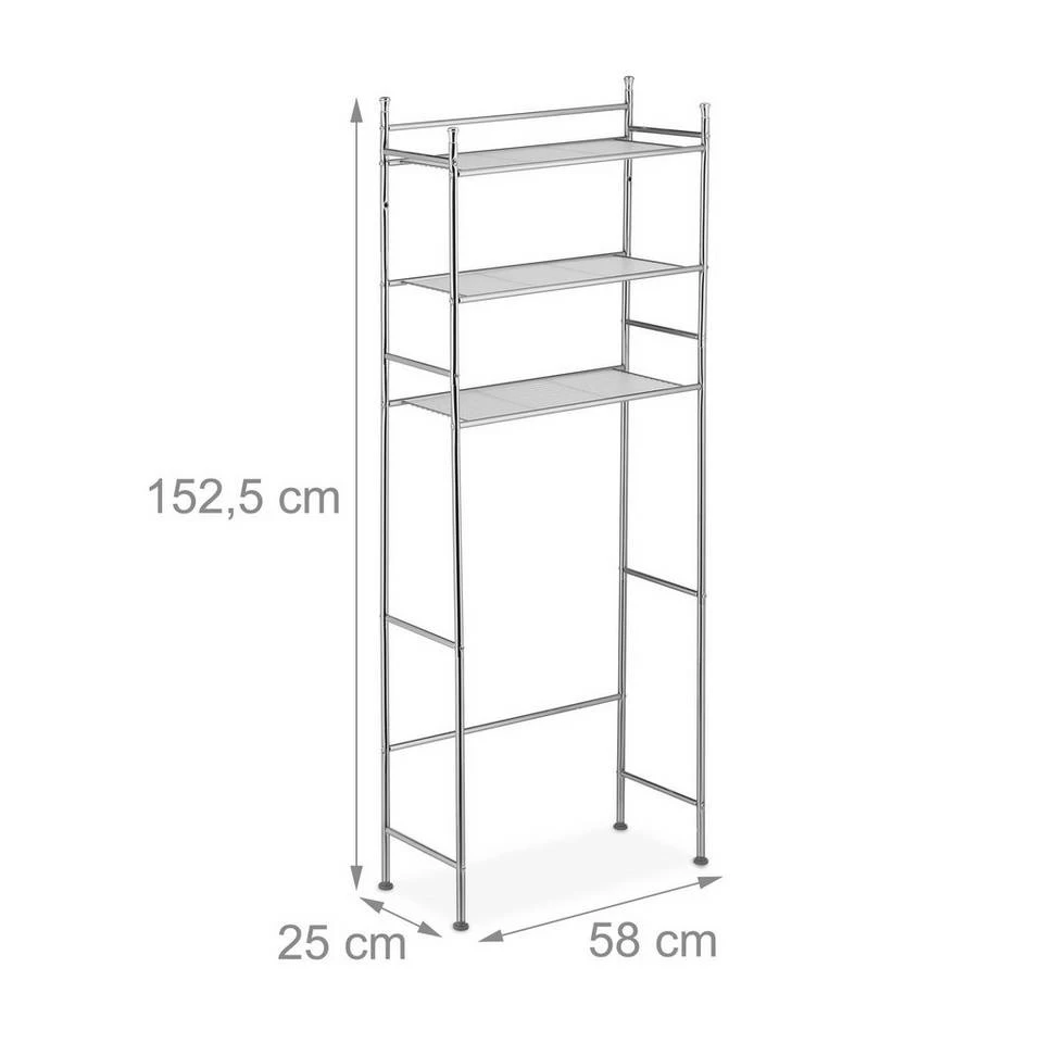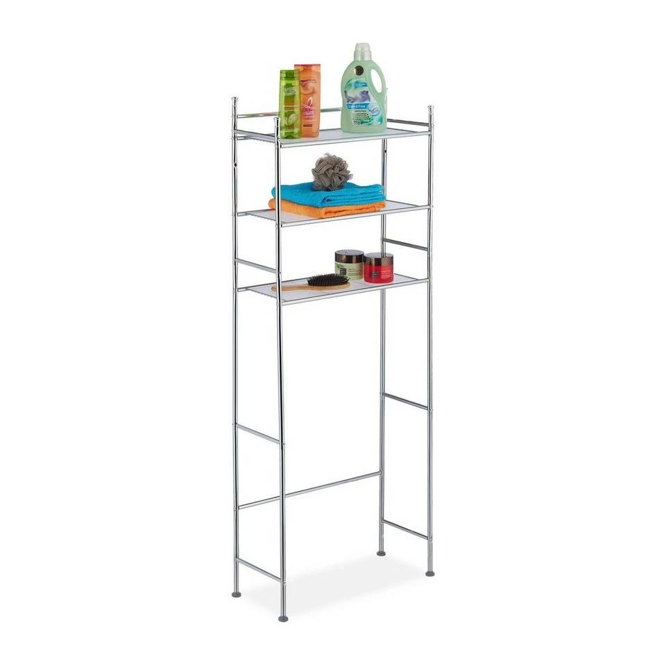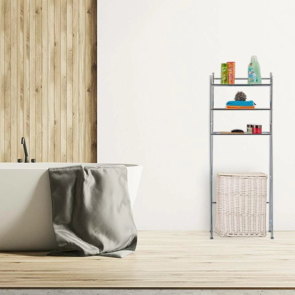 Überschrank für die Waschmaschine Im Badezimmer gibt es oft zu wenig Stauraum und man weiß nicht, wo man die ganzen Bad- und Hygieneartikeln lagern soll. Mit diesem Waschmaschinenüberschrank erschaffen Sie neuen Stauraum in bisher ungenutzter Höhe. Der Trocknerschrank besitzt 3 Ebenen. Nutzen Sie den neu gewonnenen Platz zum Verstauen von z.B. Waschmittel, Putzutensilien oder Hygieneartikeln. Das Toilettenregal ist verchromt und passt sich in jeden modernen Badeinrichtungsstil ein.