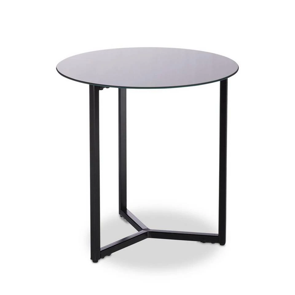 - Beistelltisch: Praktischer Couchtisch mit runder Glasplatte und Metallgestell – In edlem Schwarz