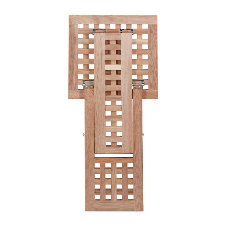 Beistelltisch mit dekorativer Gitter-Optik Einen Beistelltisch kann man in jedem Zimmer gut gebrauchen – Ob für die Nachttischlampe neben dem Bett, das Telefon im Flur oder das Glas Wein abends neben der Couch. Wenn Sie aber doch einmal keine Verwendung für das kleine Tischchen haben, können Sie es problemlos zusammenklappen und platzsparend verstauen. Der Klapptisch mit dekorativer Gitter-Optik ist komplett aus natürlichem Walnuss-Holz gefertigt und hat eine schöne Maserung.