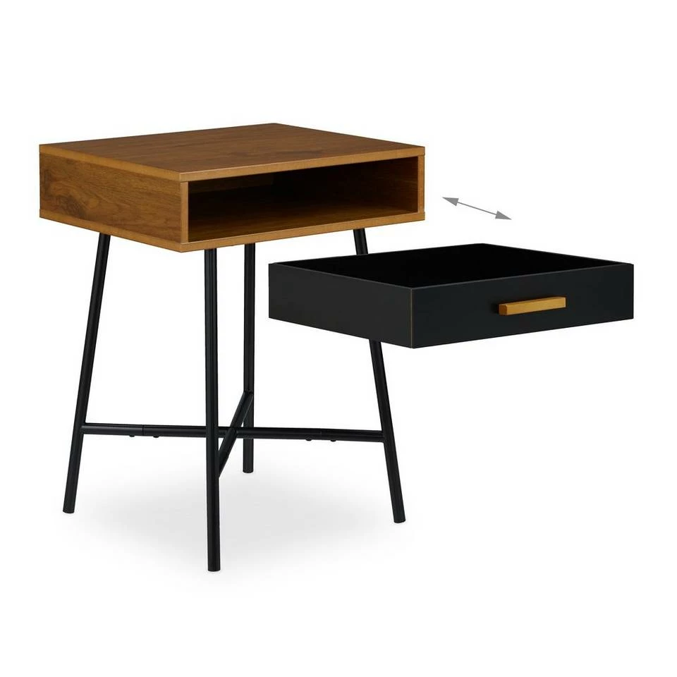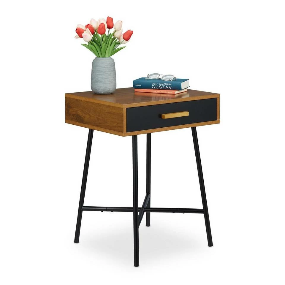 - Vintage Design: Seitentisch im Industrie-Stil – Korpus in Walnuss-Optik mit schwarzem Metallgestell