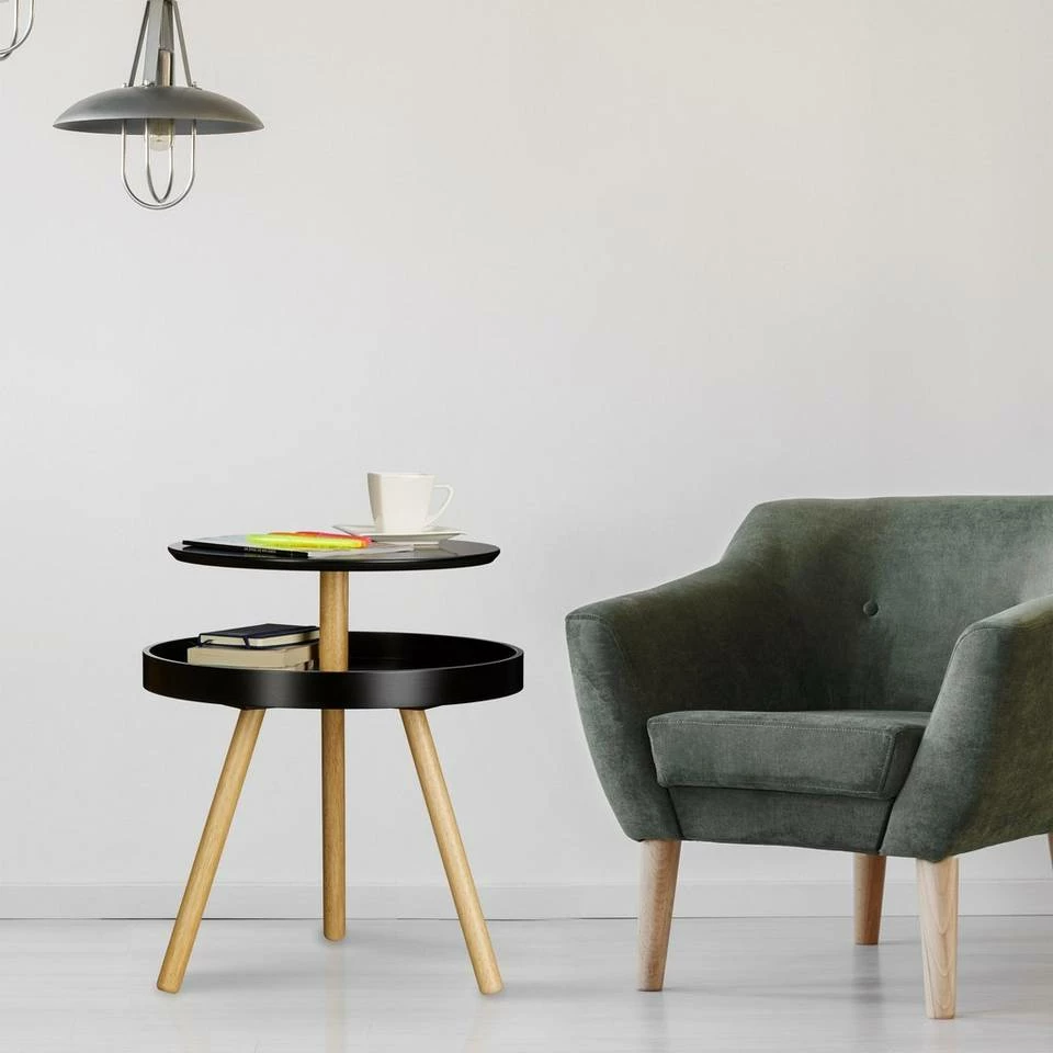 - Praktisch: Schwarzer runder Wohnzimmertisch mit großer Ablage für viel Stauraum auf kleiner Fläche