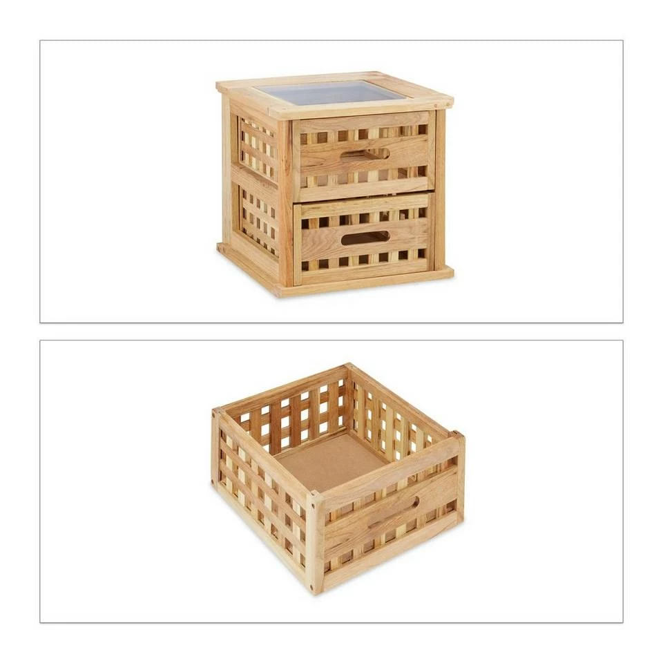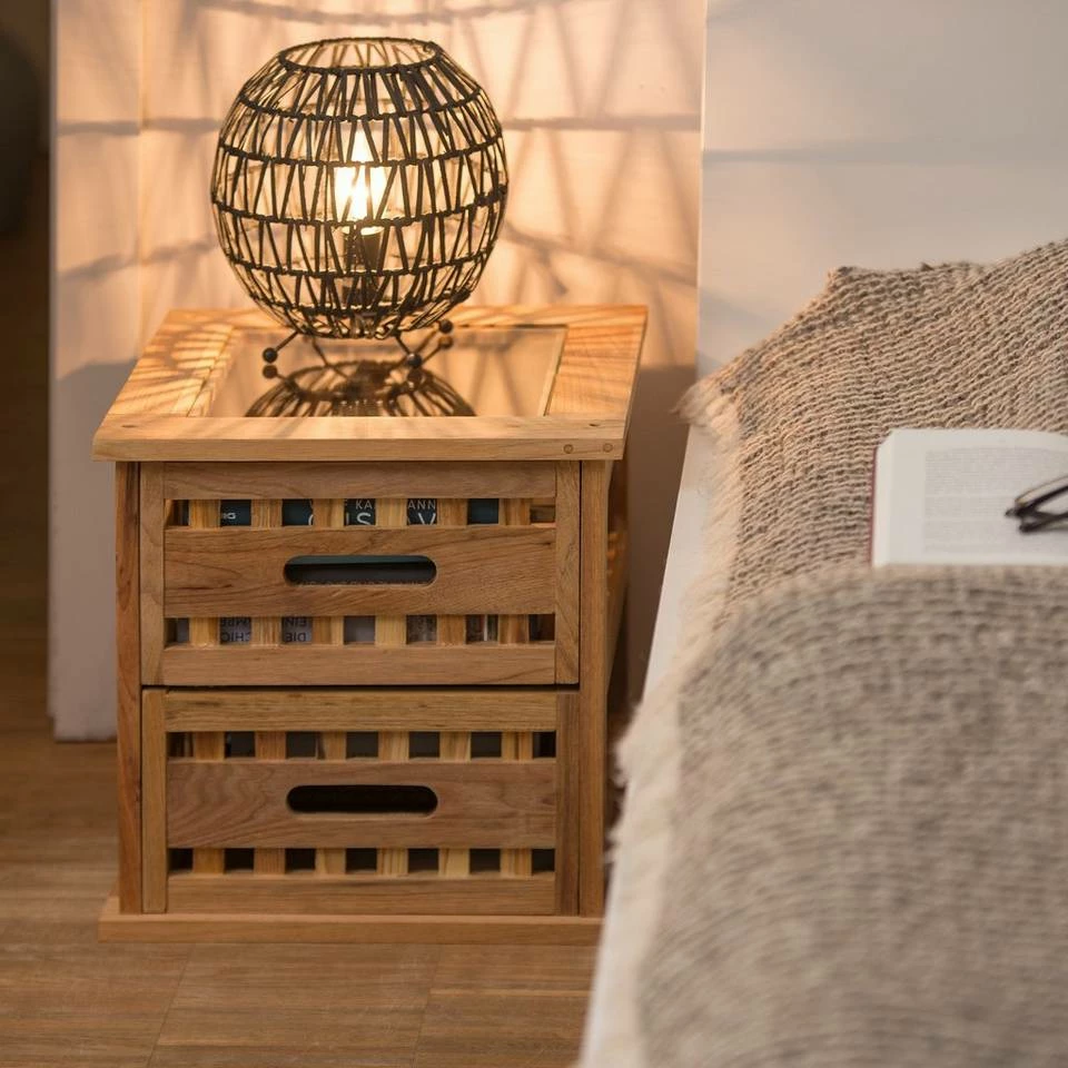 Kleiner Nachtschrank für Ihr Zuhause Dieser Beistelltisch aus Walnussholz wird sich mit seinen warmen Brauntönen wunderbar in Ihre Einrichtung einfügen. Jedes Stück ist dank seiner einzigartigen Holzmaserung ein Unikat. Die 2 Schubladen sorgen für zusätzlichen Stauraum in Ihrem Schlaf- oder Wohnzimmer. Dank der luftigen Gitter-Optik und der quadratischen Glasscheibe verschaffen Sie sich schnell Überblick über den Inhalt der Nachtkonsole.