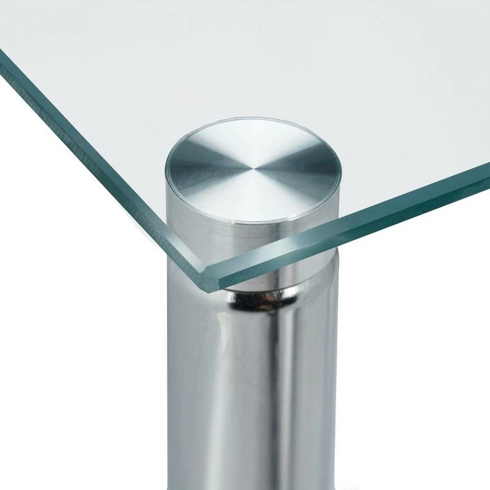 - Design: Zeitloser Sofatisch mit 2 Ablagen aus gehärtetem Glas – Stangen aus silber glänzendem Stahl