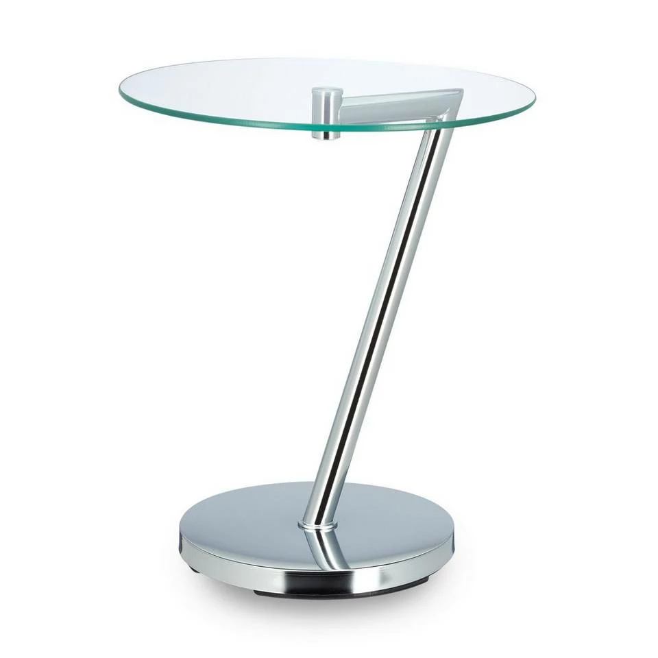 Stilvoller Kaffeetisch – Glas und Chrom für Kaffee und Kuchen Genießen Sie gemütliche Stunden bei Kaffee und Kuchen mit dem formschönen Kaffeetisch aus Glas. Der Teetisch im originellen Design besticht durch seine runde Glasplatte und dem verchromten Tischbein mit Knick. Der platzsparende Beistelltisch ist ideal für lauschige Ecken in der Wohnung, im Garten oder auf dem Balkon. Die Ablage bietet Platz für 2 Gedecke. Legen Sie eine Kaffeepause mit Ihrem Partner ein und erfreuen Sie sich an dem stilvollen Kaffeetisch. Das kleine Multitalent eignet sich auch als Nachttisch im Schlafzimmer oder als Couchtisch im Wohnzimmer.