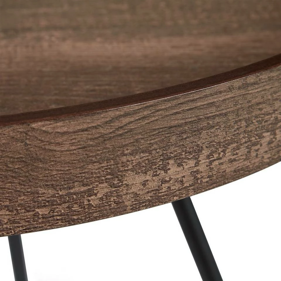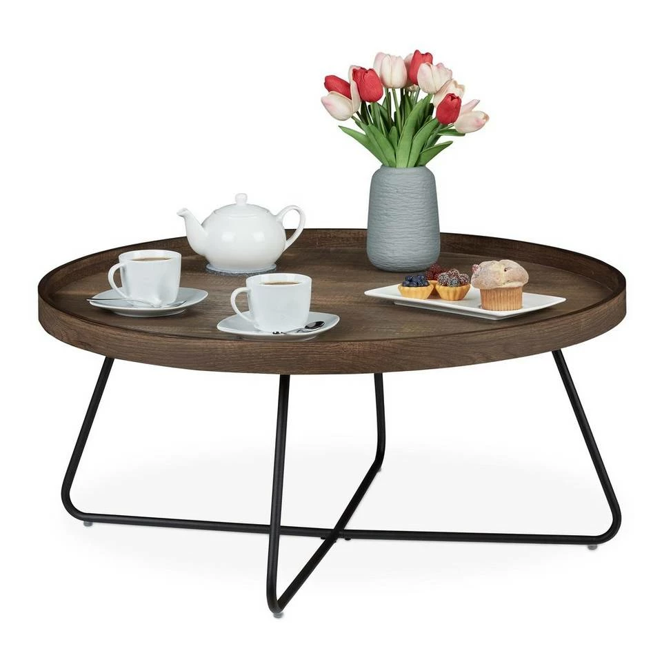 Dekorativer Ablagetisch für den Wohnbereich Dieser Beistelltisch präsentiert sich als echter Hingucker & besticht dabei durch seinen angesagten Materialmix. Die Kombination aus schwarzem Metall & brauner Holzoptik verbreitet leichten Industrial Charme. Der Couchtisch bietet eine Ablagemöglichkeit für verschiedene Dinge, die im Laufe des Wohnzimmeralltags anfallen. Snacks, Getränke, Zeitschriften oder die Fernbedienung finden so einen Platz. Auch mit Blumen, Kerzen oder anderen Dekoartikeln verziert, kommt der Kaffeetisch gut zur Geltung. Wählen Sie den Rundtisch in der passenden Größe für Ihr Zuhause.