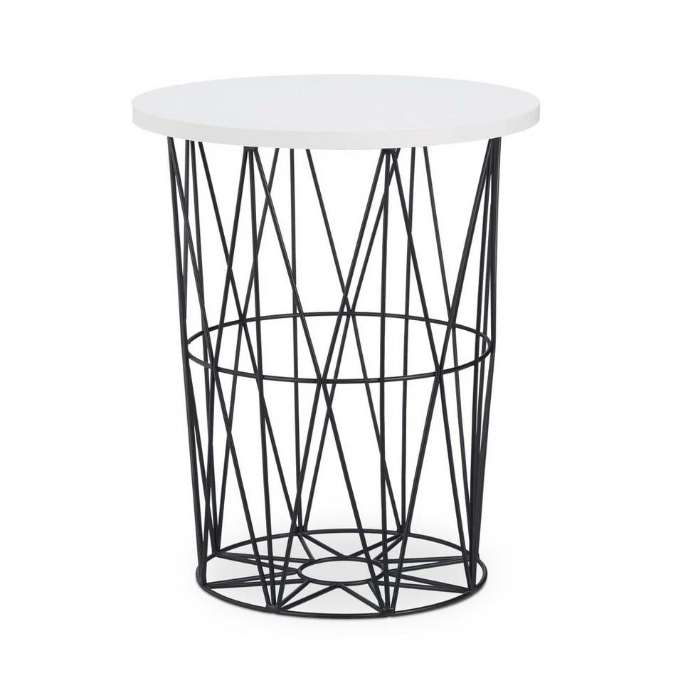 - Elegant: Moderner Dekotisch mit ausgefallenem Drahtgestell – Runde Tischplatte ist weiß lackiert