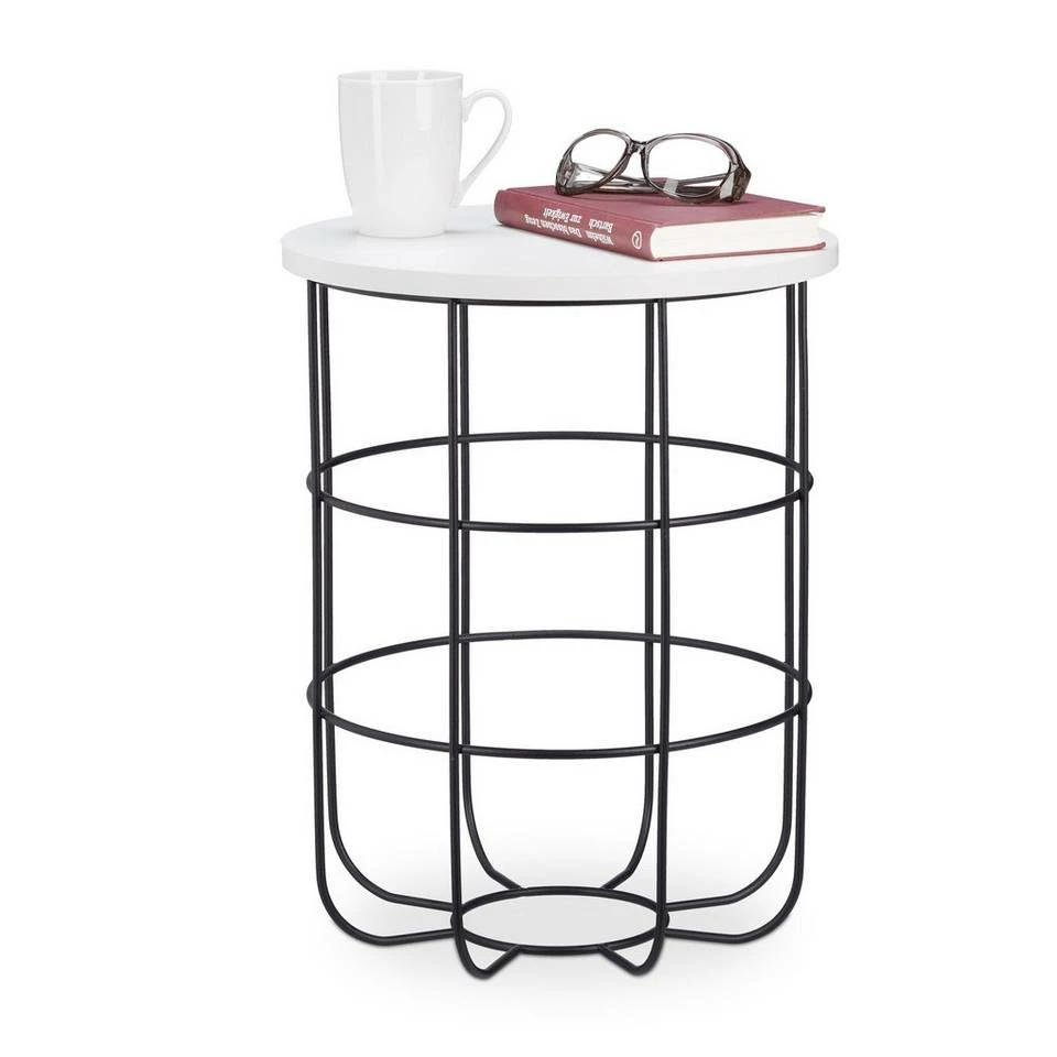 - Flache Ablage: Runder Beistelltisch für jeden Wohnbereich – Praktische Ablage mit Metallkorb