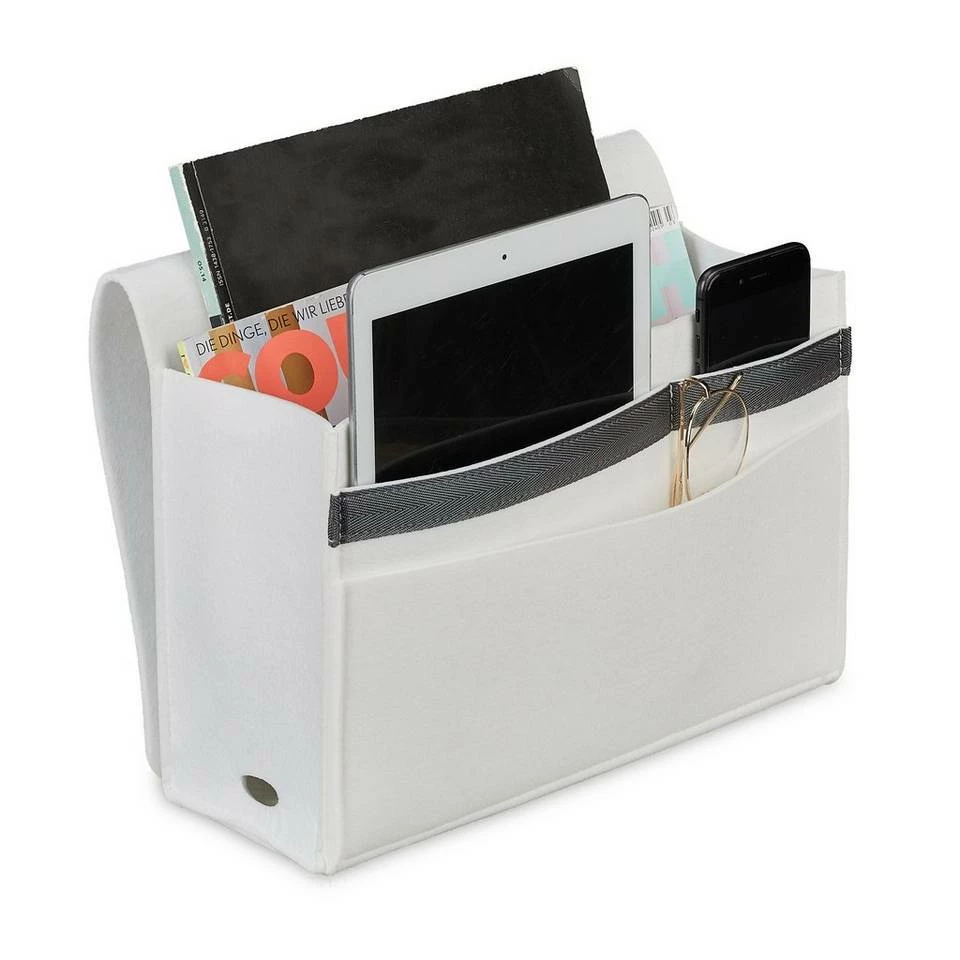 Sofa Organizer aus Filz Bücher, Taschentücher und Handy sorgen für Chaos auf dem Nachttisch? Schaffen Sie Abhilfe mit der praktischen Betttasche zum Einhängen unter Matratze oder Polster. Klettverschlüsse sorgen für sicheren Halt, während 6 Fächer Ihre Utensilien übersichtlich verwahren, ob Tablet, Lesebrille oder Lieblingslektüre. Als Sofatasche sorgt der Organizer beim nächsten Fernsehabend für mehr Übersicht auf dem Couchtisch, denn Fernbedienung und Fernsehzeitung sind griffbereit im Couch Butler verstaut.