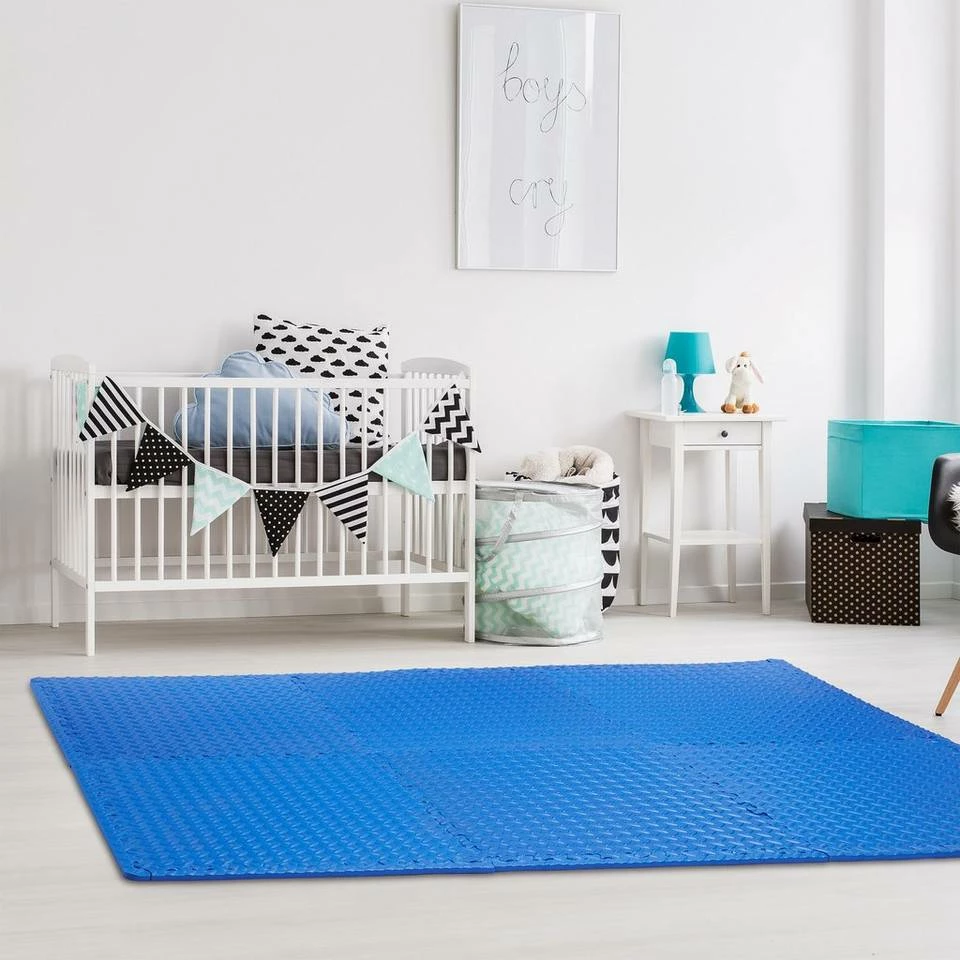 Pflegeleichte Bodenschutzmatten aus Schaumstoff Mit den blauen Steckmatten dämpfen Sie Geräusche und schützen den Boden vor Kratzern, Dellen und Abdrücken zugleich. Stellen Sie die heimischen Fitnessgeräte, wie Hantelbank oder Crosstrainer, einfach auf die beliebig erweiterbaren und veränderbaren Puzzlematten, sodass sie Stöße effektiv dämpfen. Aber auch für die tägliche Sporteinheit sind die Schaumstoffmatten ideal. Bei Sit Ups, Aerobic oder Yogaeinheiten schonen die Matten – dank des weichen Untergrundes – Gelenke und Rücken.