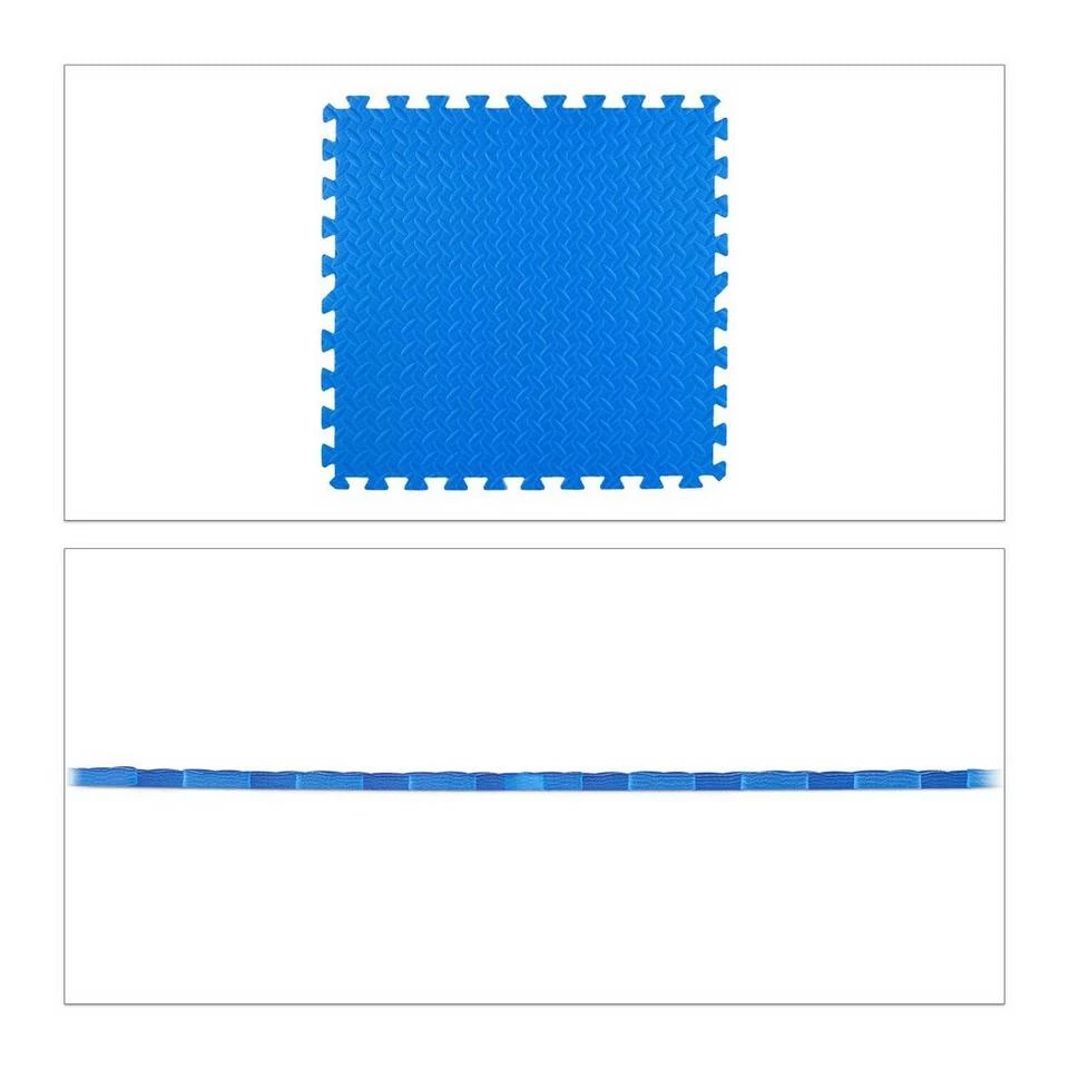 Pflegeleichte Bodenschutzmatten aus Schaumstoff Mit den blauen Steckmatten dämpfen Sie Geräusche und schützen den Boden vor Kratzern, Dellen und Abdrücken zugleich. Stellen Sie die heimischen Fitnessgeräte, wie Hantelbank oder Crosstrainer, einfach auf die beliebig erweiterbaren und veränderbaren Puzzlematten, sodass sie Stöße effektiv dämpfen. Aber auch für die tägliche Sporteinheit sind die Schaumstoffmatten ideal. Bei Sit Ups, Aerobic oder Yogaeinheiten schonen die Matten – dank des weichen Untergrundes – Gelenke und Rücken.