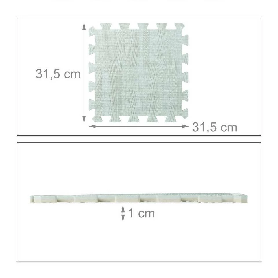 - Basics: Schaumstoffmatten aus EVA (BPA-frei) – Fläche: ca. 3,4 m² – Dekorative Holzoptik in Weiß