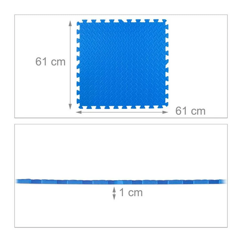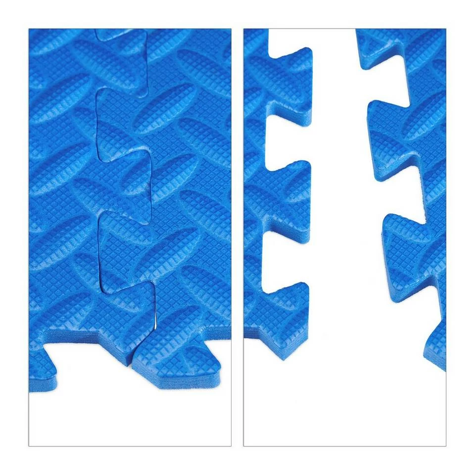 Pflegeleichte Bodenschutzmatten aus Schaumstoff Mit den blauen Steckmatten dämpfen Sie Geräusche und schützen den Boden vor Kratzern, Dellen und Abdrücken zugleich. Stellen Sie die heimischen Fitnessgeräte, wie Hantelbank oder Crosstrainer, einfach auf die beliebig erweiterbaren und veränderbaren Puzzlematten, sodass sie Stöße effektiv dämpfen. Aber auch für die tägliche Sporteinheit sind die Schaumstoffmatten ideal. Bei Sit Ups, Aerobic oder Yogaeinheiten schonen die Matten – dank des weichen Untergrundes – Gelenke und Rücken.