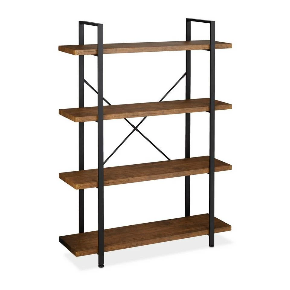 - Design: Büroregal mit schwarzem Metallgestell und Ablagen in brauner Holzoptik für rustikales Flair