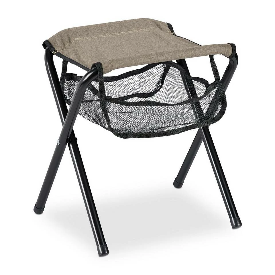 - Mit Tasche: Falthocker mit Netz unter der Sitzfläche für Handy uvm. – Fach HxBxT: ca. 8 x 25 x 25 cm