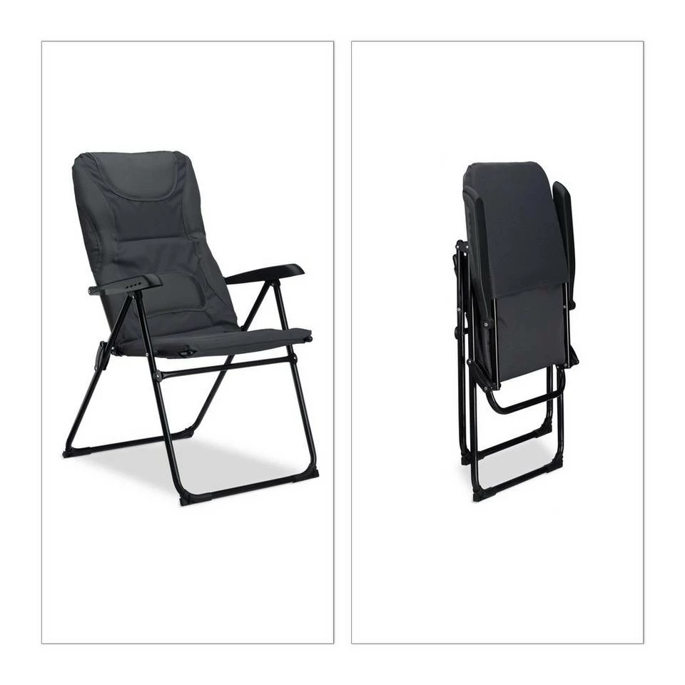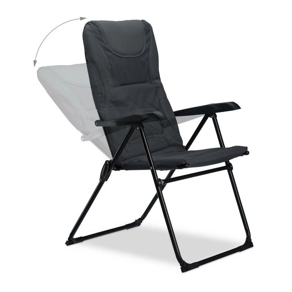- Klappbar: Die Klappstühle sind schnell platzsparend verstaut – Die Lehne ist 2 Stufen nach hinten verstellbar – Einfach die beiden Armlehnen nach oben ziehen