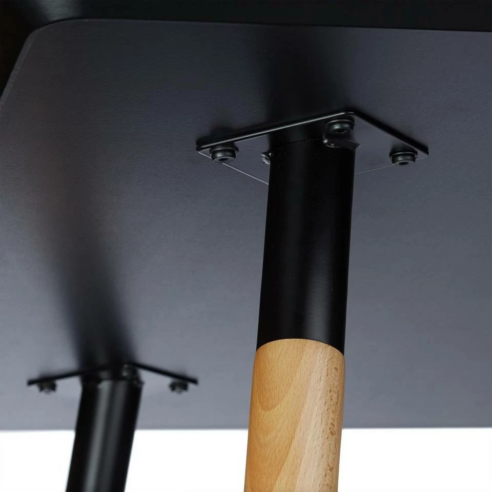 - Rechteckige Tischplatte: Eckige Fläche aus matt lackiertem Holz (MDF) in Schwarz – Höhe: 75 cm, Breite: 120 cm, Tiefe: 80 cm – Tischplattenstärke: 2 cm
