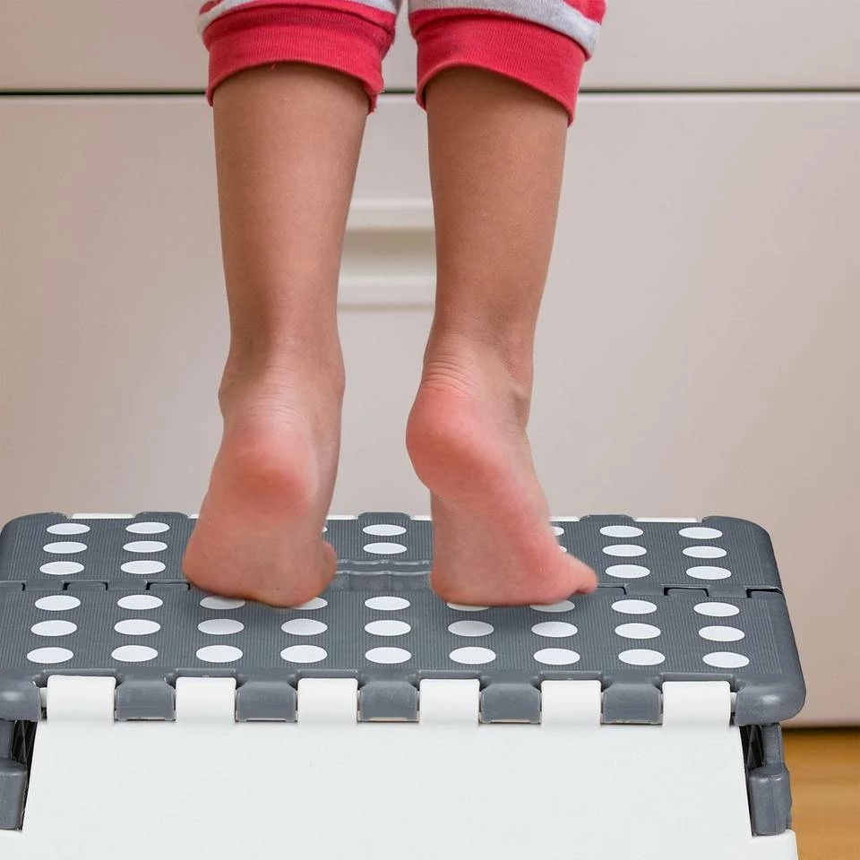 - Einstufig: Niedriger Klapphocker als universelle Aufstiegshilfe im Haushalt – In grau-weißem Design