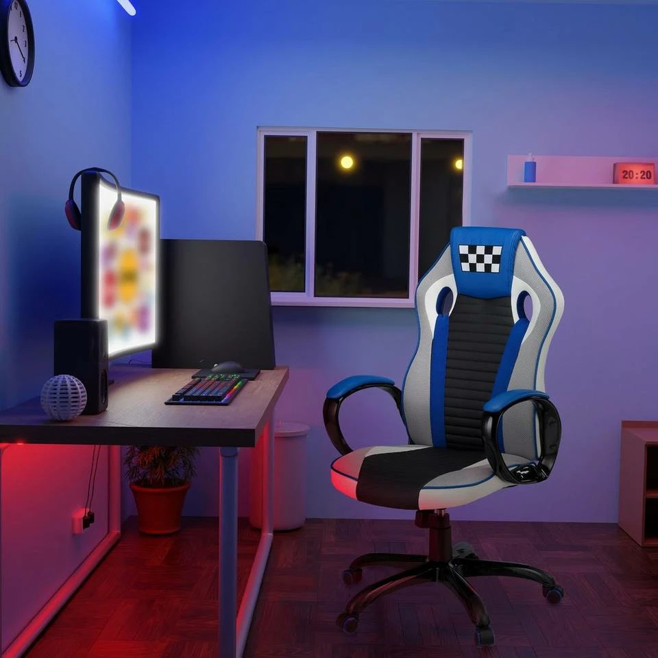 Drehstuhl zum Spielen und Arbeiten Gemütlich im Bürostuhl versinken und zocken? Mit diesem Gaming Stuhl bist Du für jede virtuelle Herausforderung gerüstet, ob Strategie-Spiel, Rennspiel oder Jump 'n' Run. Der höhenverstellbare, alltagstaugliche Drehstuhl ist weich gepolstert und verfügt über eine breite Sitzfläche. Die ergonomische Form des stabilen Racing Stuhls sorgt auch bei längeren Sessions für vollen Komfort. Das stylisch sportliche Racer-Design des Gaming Sessels lädt zum Schlagabtausch mit Onlinespielern oder NPC ein.