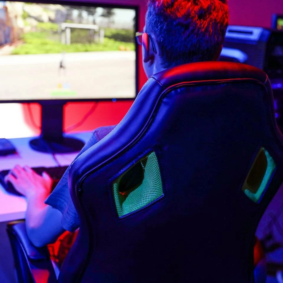 Gaming Stuhl XR9 zum Zocken mit Stil Für lange Arbeiten oder intensive Gaming-Sessions am Computer bietet der Gaming Stuhl XR9 hohen Sitzkomfort in ansprechendem Design. Versinken Sie in dem weichen Polster und ruhen Sie ihre Arme auf den bezogenen Armlehnen aus. Der stufenlos höhenverstellbare Bürostuhl passt sich jeder Körpergröße an und bietet auch bei hoher Belastung ein angenehmes Sitzgefühl. Schwarzes PU-Kunstleder und farbiger Netzstoff bilden das sportliche Design des geschwungenen Drehstuhls. Die hohe, rückenfreundliche Lehne erinnert an einen Autositz. Der stylische Gamer Chair bildet somit die stimmungsvolle Grundlage für ausgiebige Online-Duelle.