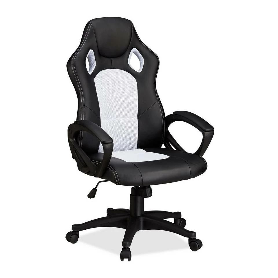 - Design: Racing Chair aus schwarzem Kunstleder und weißem Netzstoff – In weiteren Farben erhältlich