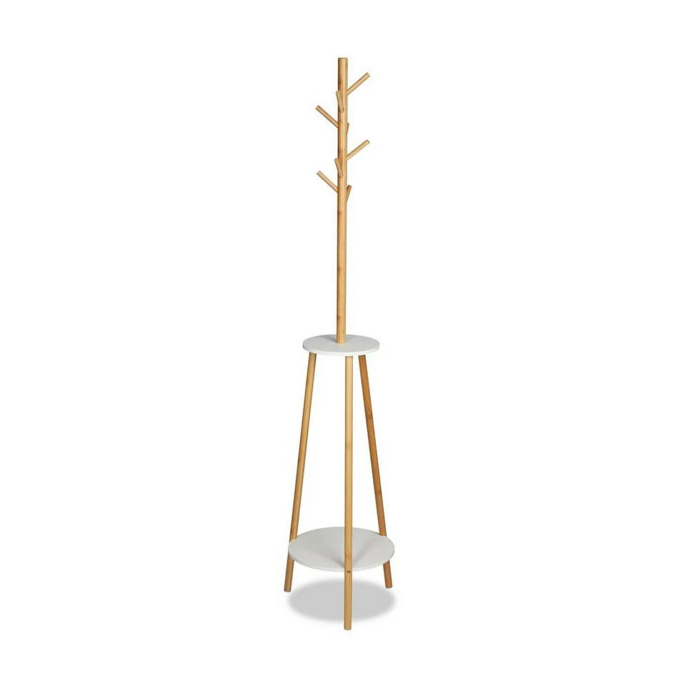 Jackenständer für Zuhause oder im Büro Ein unaufgeräumter Flur oder das Jackenchaos im Büro gehören mit diesem praktischen Garderobenständer der Vergangenheit an. Auf insgesamt 8 Haken können Sie Jacken, Mäntel, Schals & Taschen aufhängen. Die 2 runden Ablagen bieten Platz für Hüte, Mützen & andere Accessoires. Darüber hinaus überzeugt der Garderobenbaum durch sein skandinavisches Design. Stilvoll vereint er Bambus-Elemente mit weißem MDF Holz. So ist die runde Holzgarderobe zugleich ein dekorativer Hingucker in jeder Einrichtung.