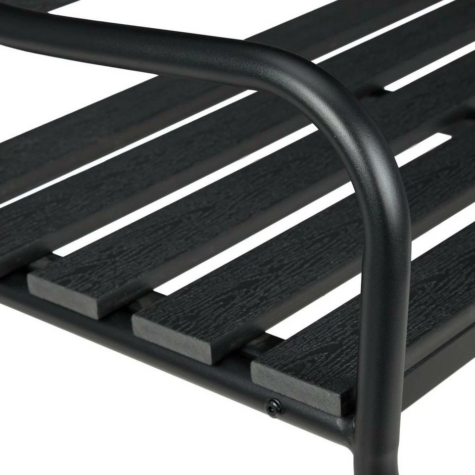 Zweisitzer Gartenbank im Materialmix Machen Sie es sich draußen auf der Sitzbank gemütlich und verbringen Sie zu zweit ruhige Stunden im Garten oder auf dem Balkon. Die Balkonbank überzeugt mit dem schlanken und dabei stabilen Rahmen aus Stahl sowie den robusten Latten aus WPC, einem Holz-Kunststoff-Material in authentischer Holzoptik. Der Aufbau ist zudem angenehm unkompliziert und schnell erledigt. Genießen Sie die warme Sommerzeit im Freien mit der Sitzbank in schlichtem Schwarz.