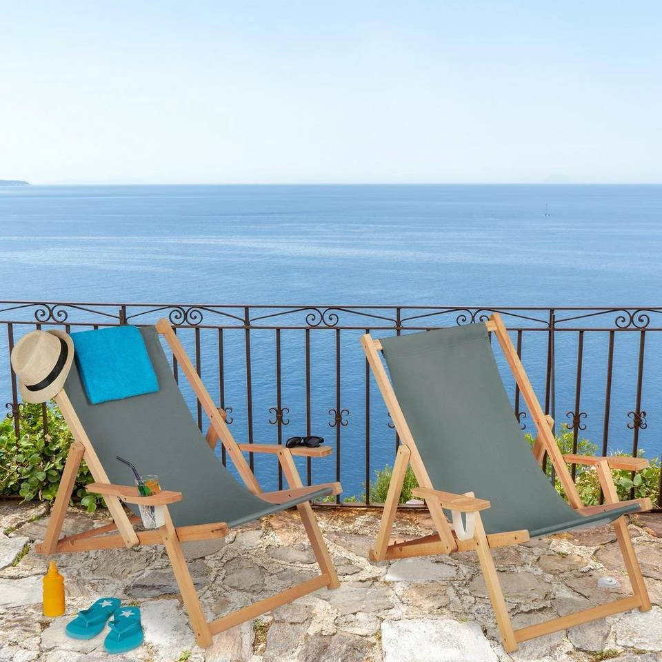 - 2er Set: Die grauen Sonnenstühle sind das ideal Möbelstück für den Garten – HBT: ca. 92×69,5×101 cm