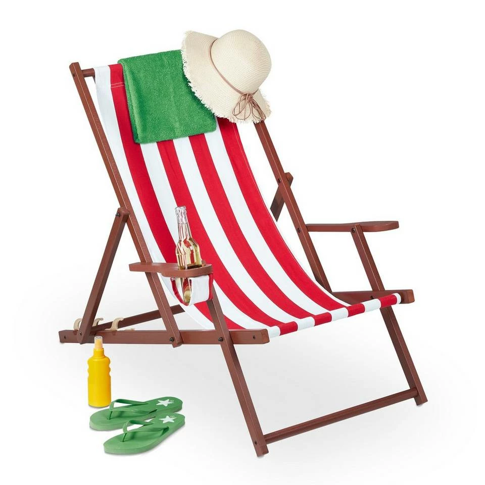- Relaxen: Holen Sie sich Urlaubsfeeling nach Hause mit dem weiß-rot gestreiften Strandliegestuhl