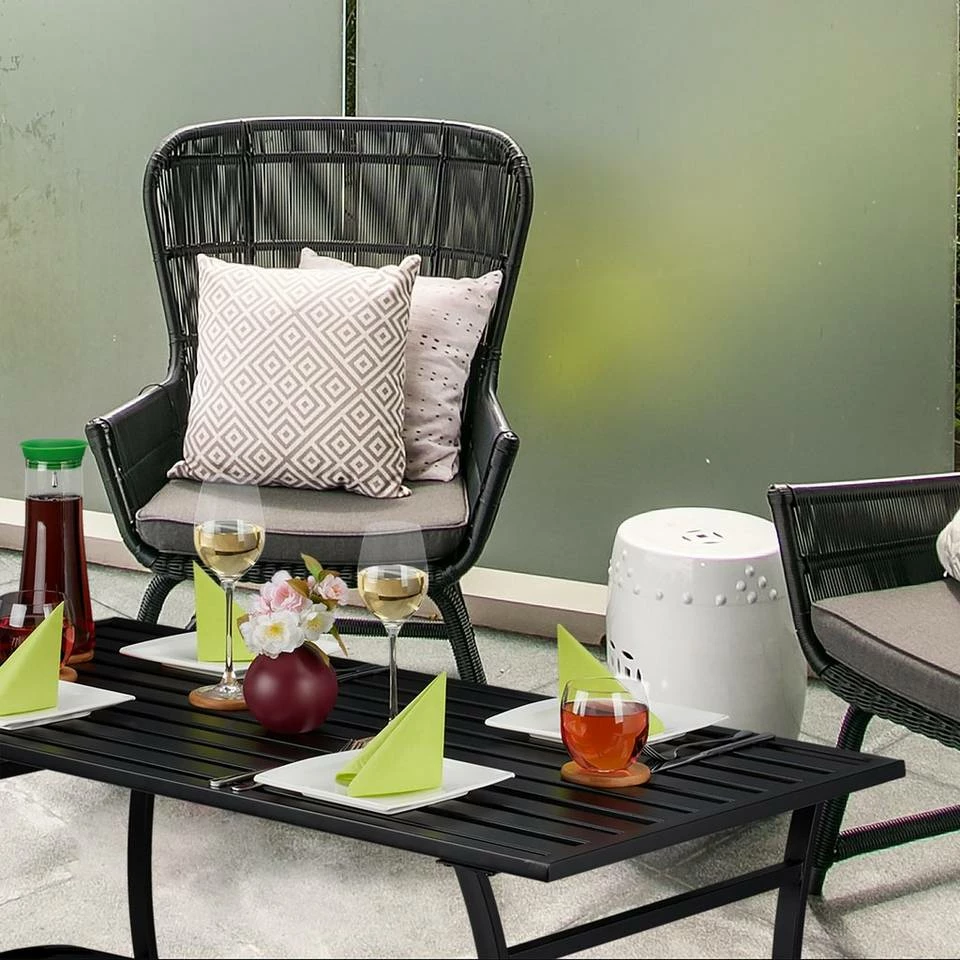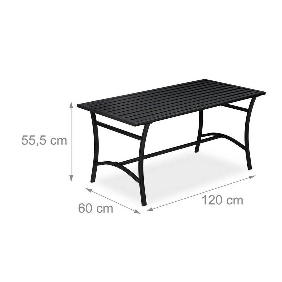 - Eckig: Rechteckiger, niedriger Gartentisch in Schwarz – Größe H x B x T: ca. 55,5 x 120 x 60 cm