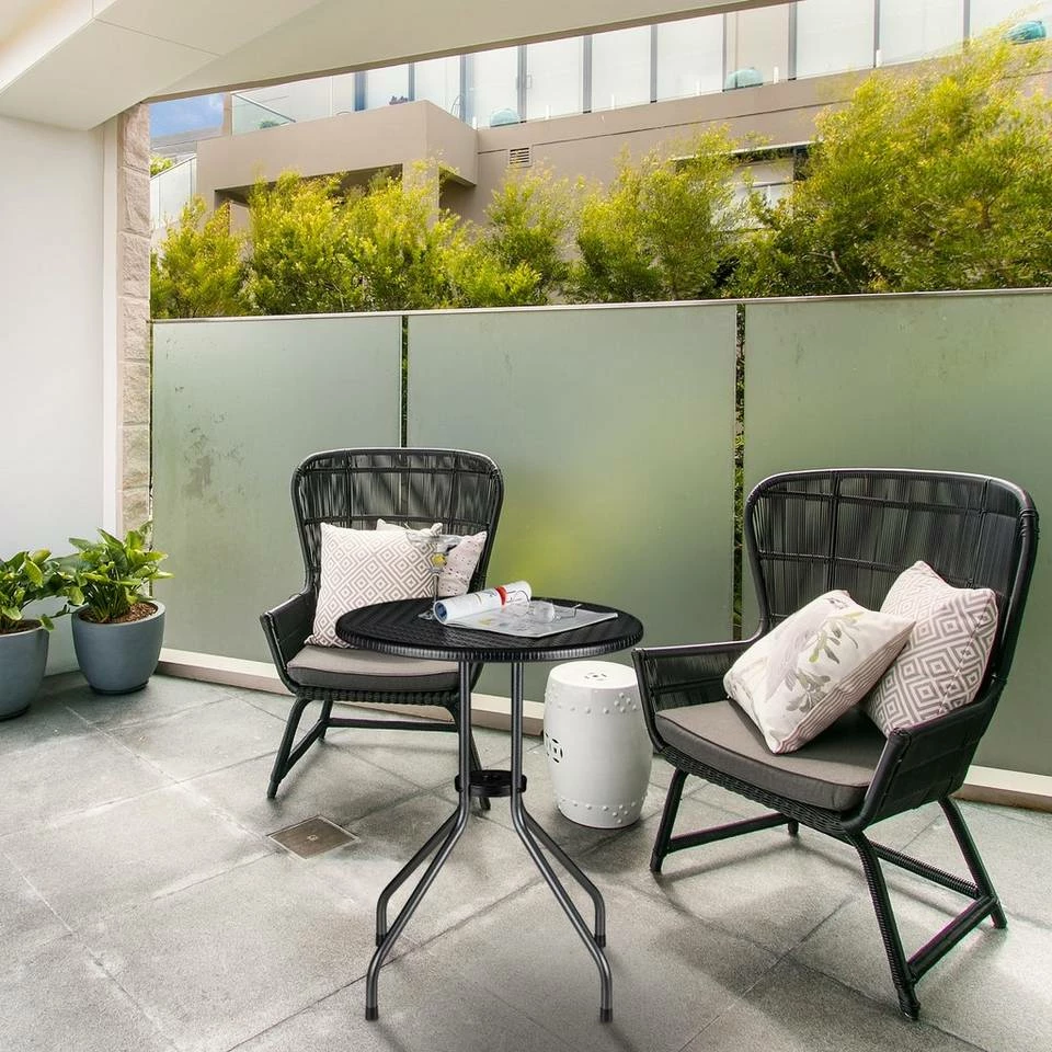 Kleiner Rundtisch in Schwarz Mit dem Kunststofftisch holen Sie sich einen echten Allrounder nach Hause. Ob als Gartentisch, Balkontisch, Bistrotisch oder Grilltisch, der Beistelltisch bietet viele Einsatzmöglichkeiten. Die runde Tischplatte in charmanter Rattan-Optik ist wetterfest und pflegeleicht. Sie kann problemlos mit einem feuchten Lappen gereinigt werden. Der Aufbau des Teetischs erfolgt dank beiliegendem Montagematerial schnell und problemlos. Hinweise: Den Tisch nicht zu lange starker Sonneneinstrahlung aussetzen.