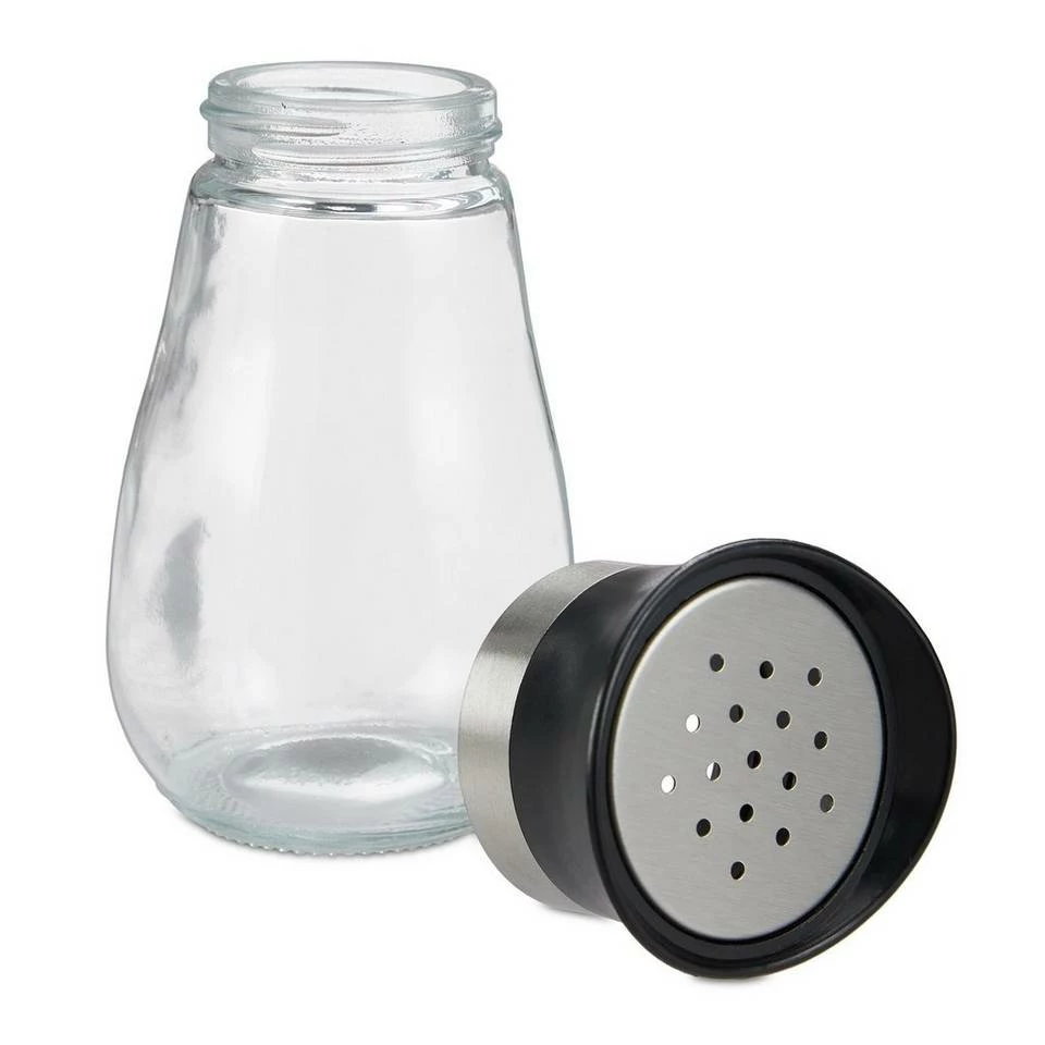- Zum Streuen: Gewürzbehälter aus Glas und Edelstahl mit Schraubdeckeln und praktischen Streueinsätzen