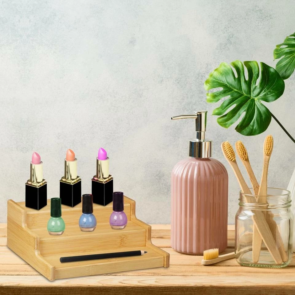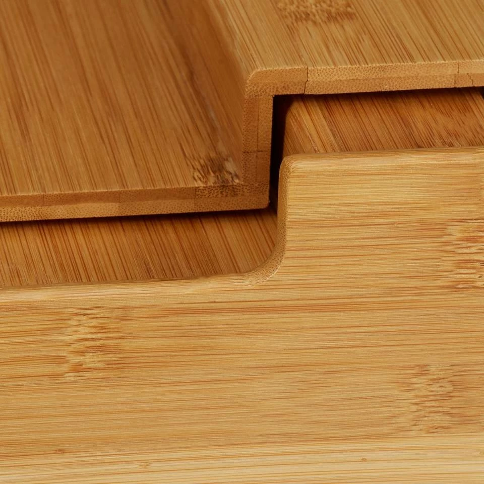 Ausziehbare Gewürztreppe mit 3 Stufen Das Gewürzregal wird schnell zu klein, wenn man sich ein paar außergewöhnliche Kräuter oder Gewürzmischungen zulegt. Die Gewürztreppe mit 3 Ebenen bietet nicht nur in der Höhe Stauraum, sondern auch in der Breite. Das flexible Gewürzküchenregal kann nämlich ganz leicht vergrößert werden. Einfach ausziehen und schon haben sie zusätzlichen Platz. Sorgen Sie mit dem Organizer für den richtigen Überblick beim Würzen. Das Regal ist komplett aus feuchtigkeitsresistentem Bambus gefertigt.