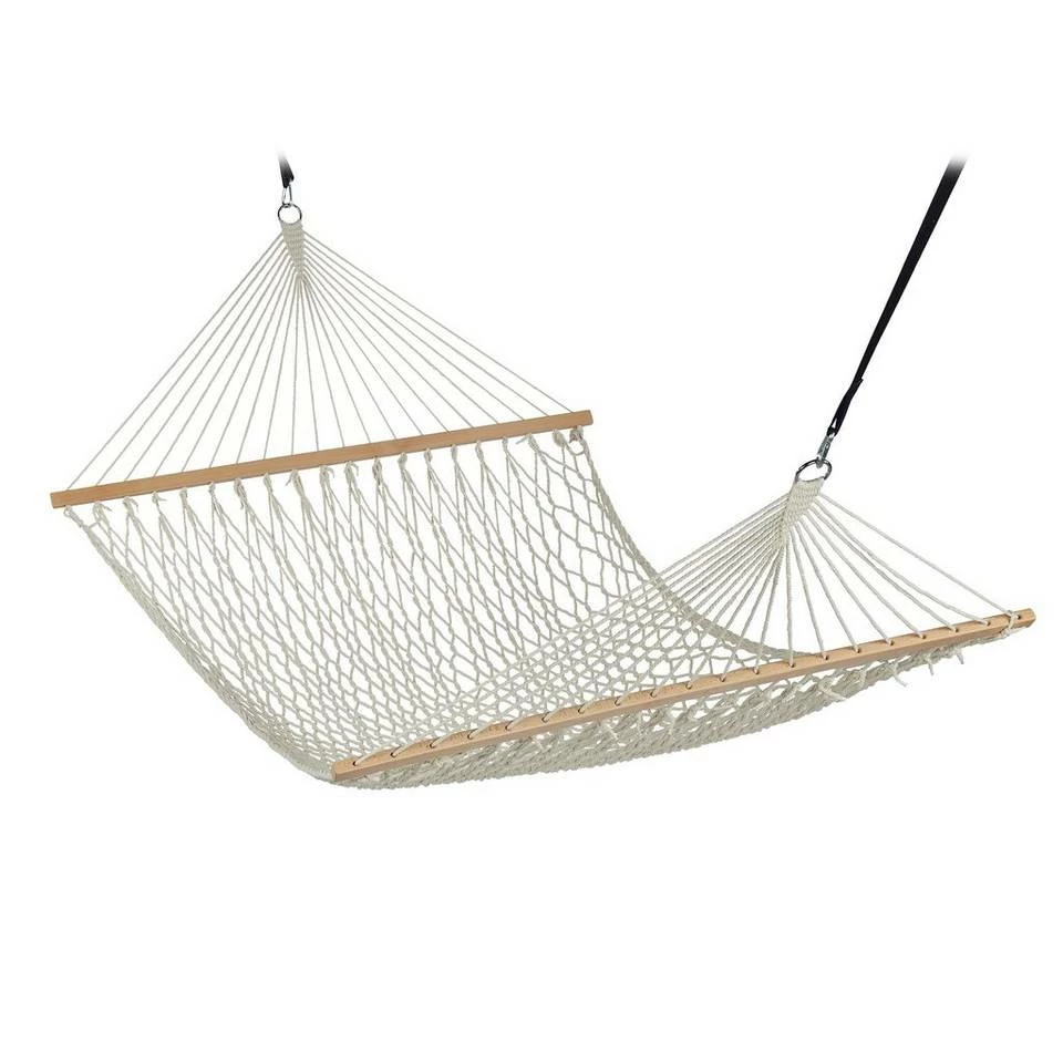 - Basics: Garten Hängematte aus Baumwolle und Holz HBT ca. 2 x 140 x 305 cm – Mit Befestigungsmaterial