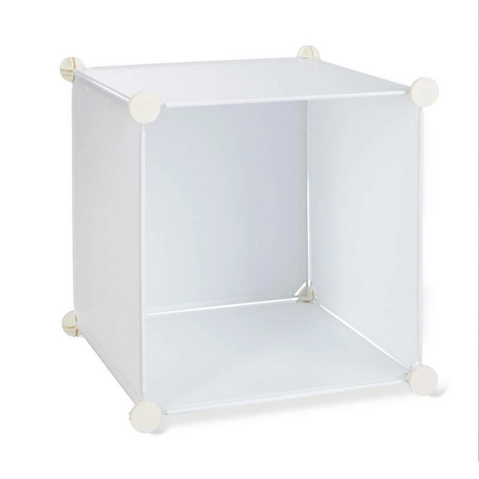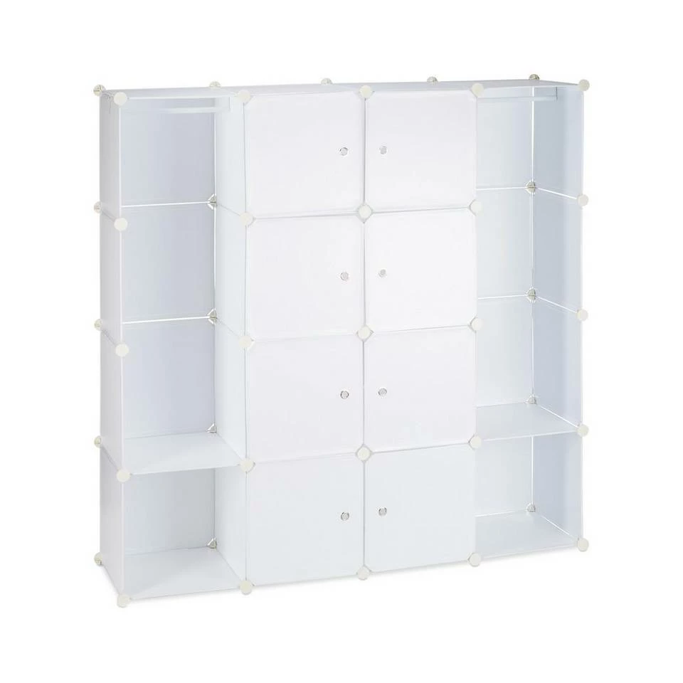 Kleiderschrank Stecksystem mit viel Stauraum Dieses flexible Steckregal ist genau das Richtige, wenn Sie gerne mal die Möbel verrücken wollen oder eine flexible Aufbewahrungsmöglichkeit suchen. Sie können durch die Kleiderstange eine offene Garderobe bauen oder ein Würfelregal mit bis zu 12 Fächern. Ganz ohne Bohren und Schrauben gelingt der Aufbau. Als Kleiderschrank mit Türen im Schlafzimmer oder offener Raumteiler im Wohnzimmer wirkt die schlichte Aufbewahrungsmöglichkeit nie fehl am Platz. Der Kunststoff lässt sich einfach mit einem feuchten Tuch säubern. Hinweis: Aufbau bei Raumtemperatur durchführen, um Biegsamkeit der Verbindungsstücke zu gewährleisten