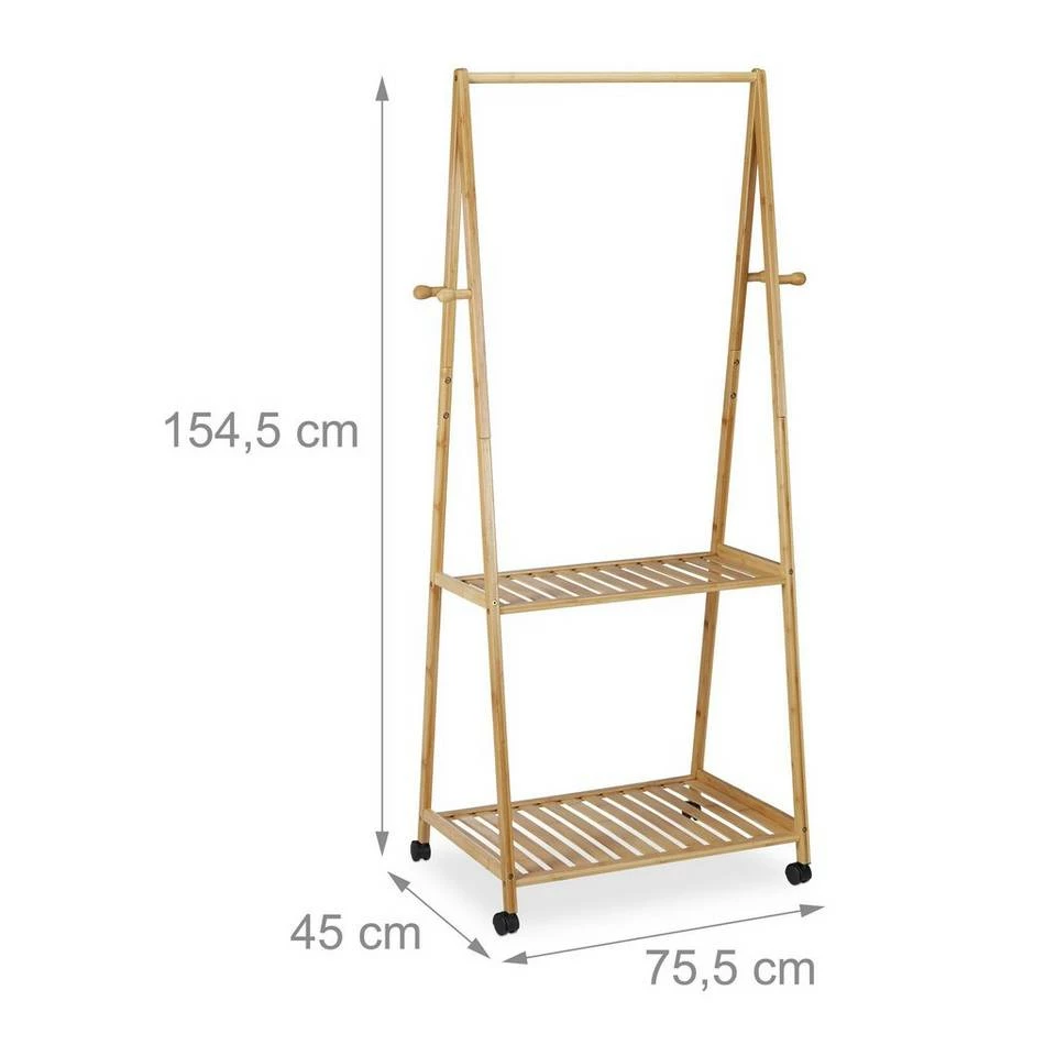 - Basics: Rollgarderobe aus Bambus – H x B x T: ca. 154,5 x 75,5 x 45 cm – Länge der Stange: ca. 59 cm