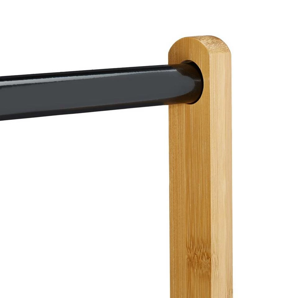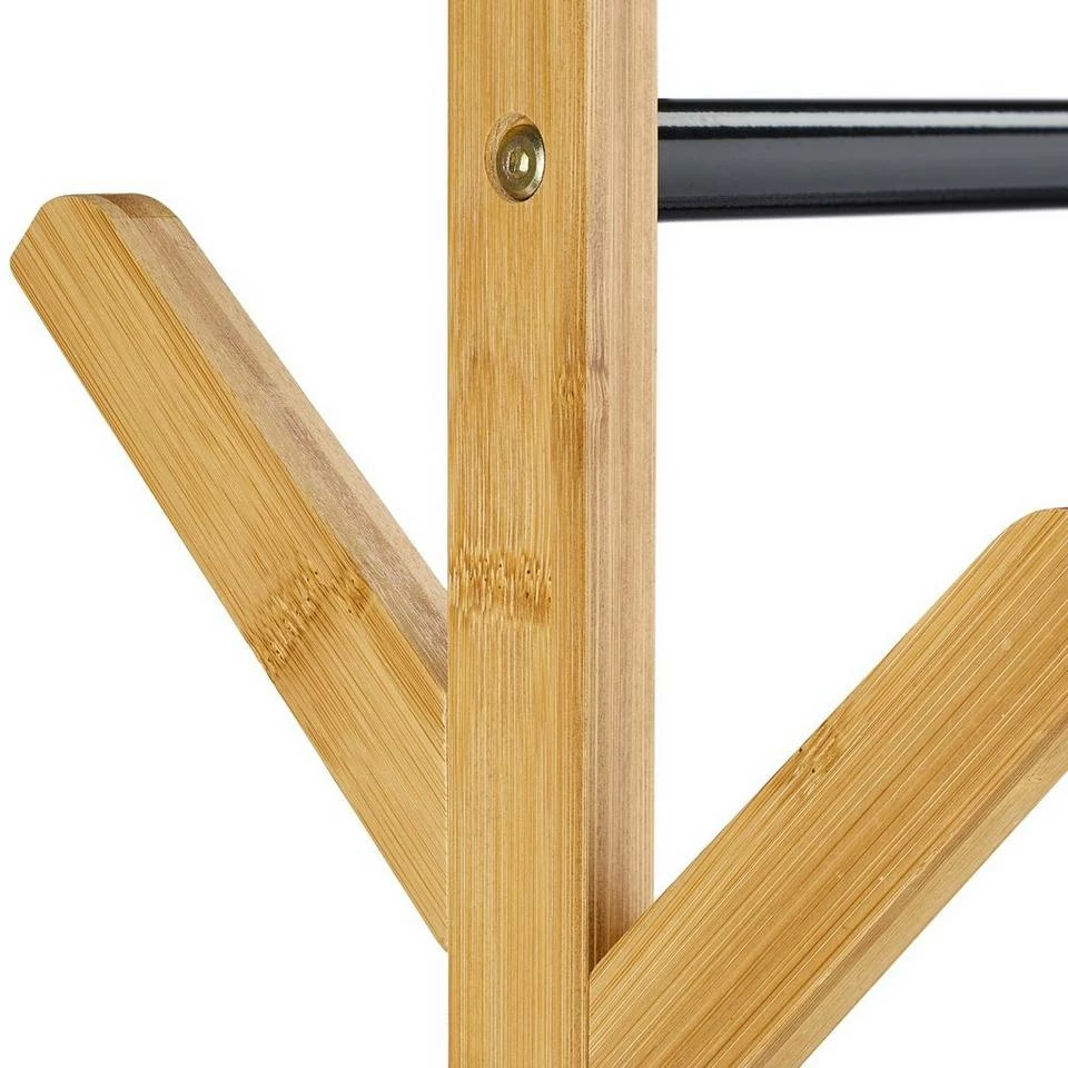 - Modern: Natürlicher Bambus kombiniert mit schwarzen Metallstangen – Verleiht Garderobe modernen Look