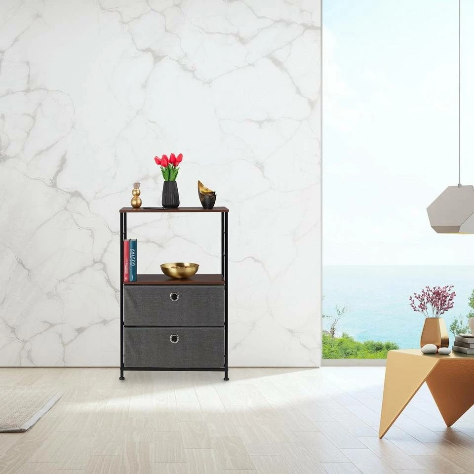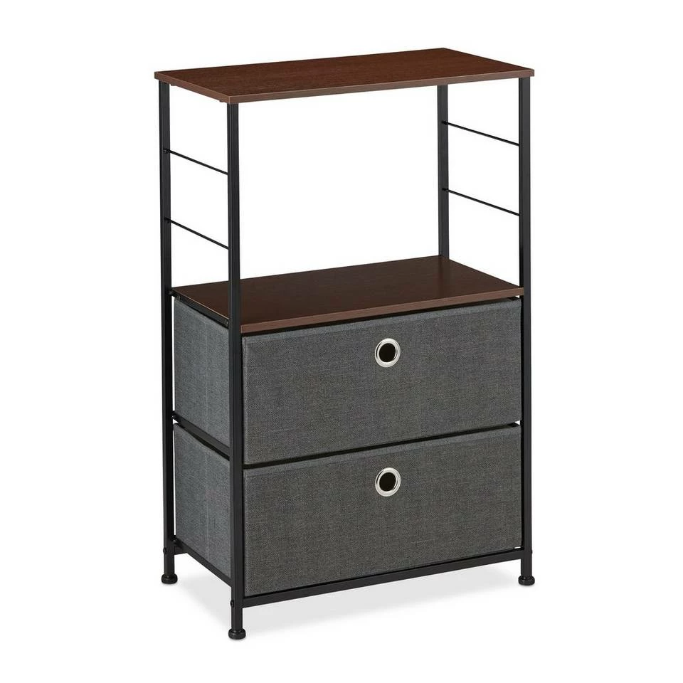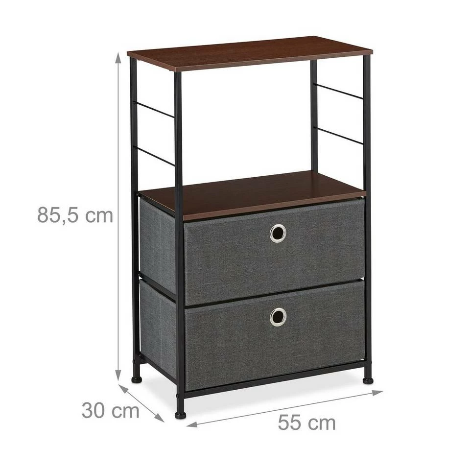 Freistehender Korbschrank Der Schrank Organizer hilft Ihnen, Kleidungs- und Wäschestücke, Handtaschen und vieles mehr platzsparend aufzubewahren. Stellen Sie den Schubladenschrank einfach in Ihren Kleiderschrank, sodass Sie noch viel mehr in ihm unterbringen können. Die 2 Schubfächer und die Ablage sind auch im Kinder- oder Schlafzimmer nützlich. Die dunkelbraunen MDF-Platten mit ihrer realistischen Maserung ergänzen sich perfekt mit dem grauen Polyester-Stoff. Das nötige Werkzeug liegt der Lieferung bereits bei.