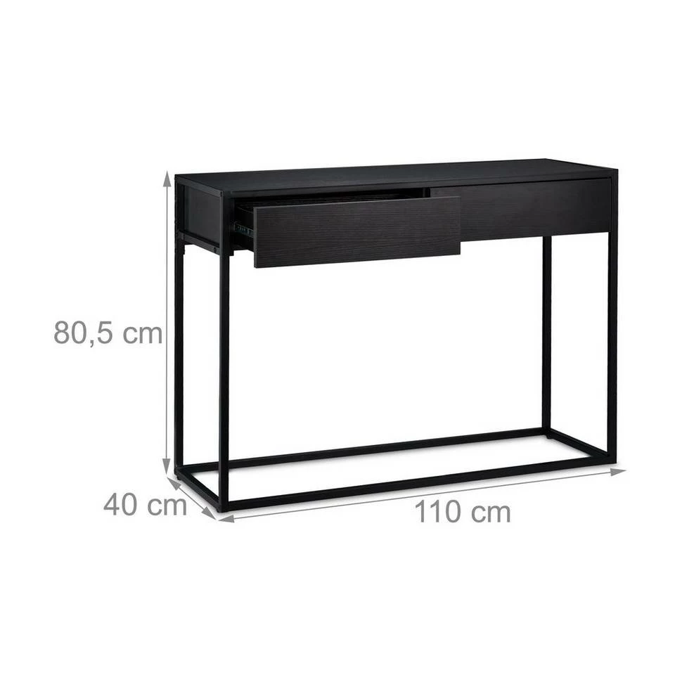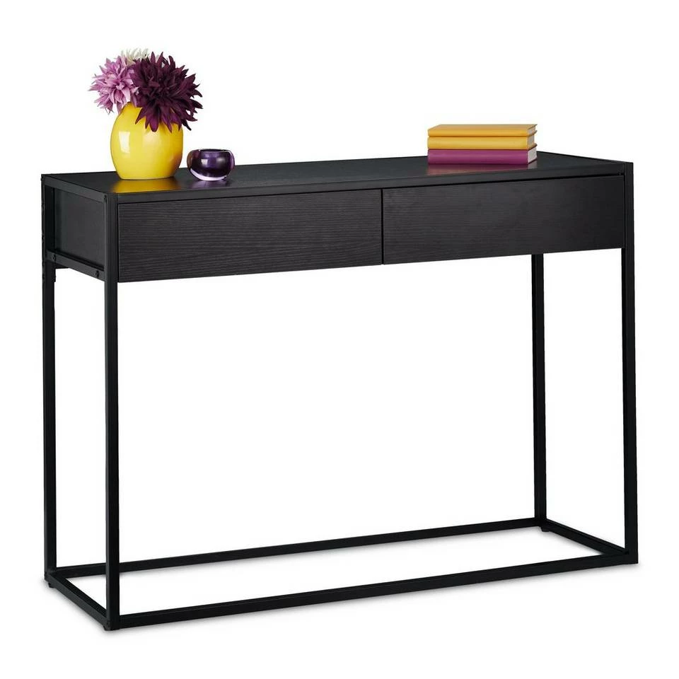 - Design: Schwarzer Flurtisch mit Ablage und Schubladen aus PB und Metallrahmen – Moderner Materialmix
