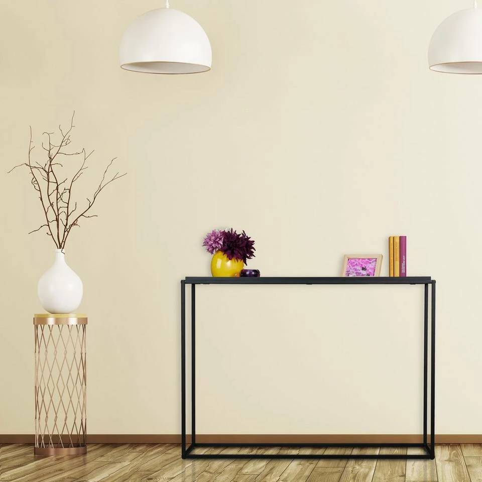 - Basics: Schwarzer Flurkonsolentisch – Maße H x B x T: ca. 80 x 110 x 38 cm – Traglast: max. 30 kg